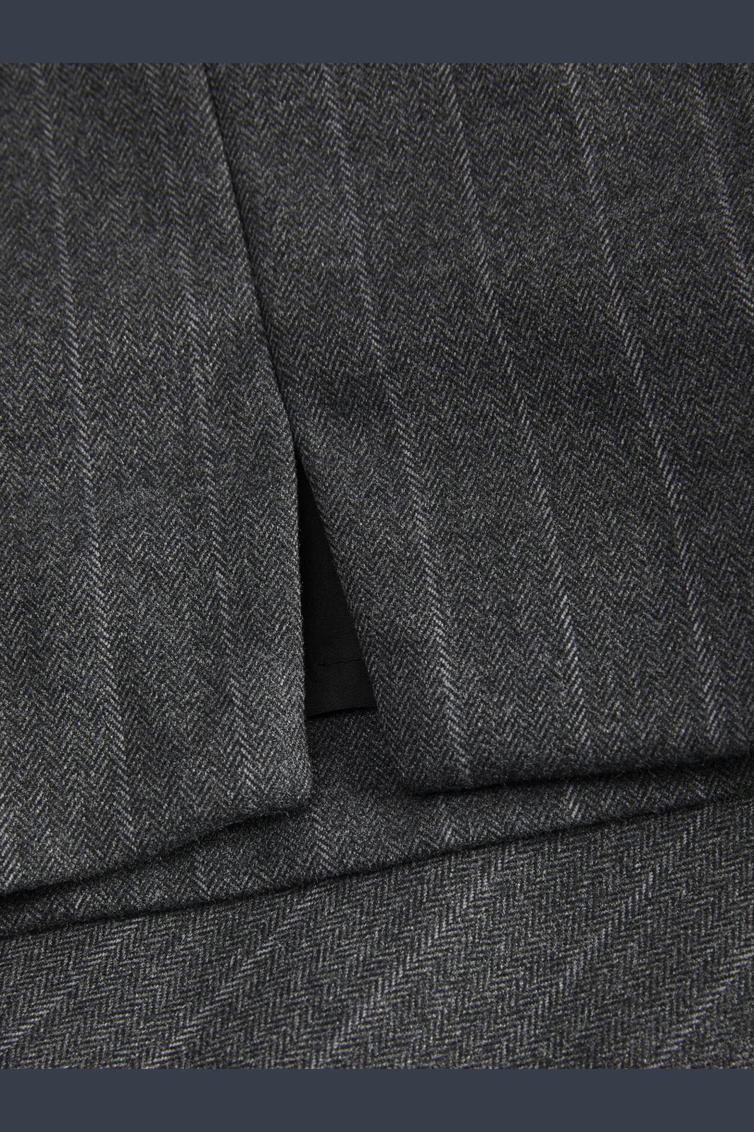 Mørk grå skjørt fra Jjxx med lysegrå striper. Den børstede overflaten gir et mykt uttrykk, mens pinstripe- og herringbone-mønsteret skaper et klassisk utseende.