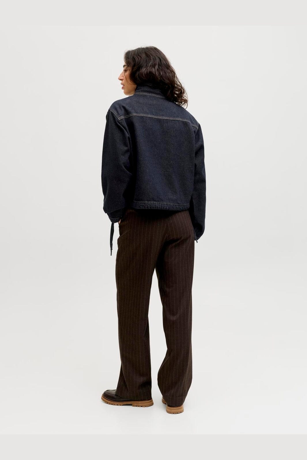 Denim-genser fra Jjxx i mørkeblå denim med høy krage og halv knappelukking. Den har en løs passform og brystlomme på forsiden. Snorer i midjen gir mulighet for å justere passformen.