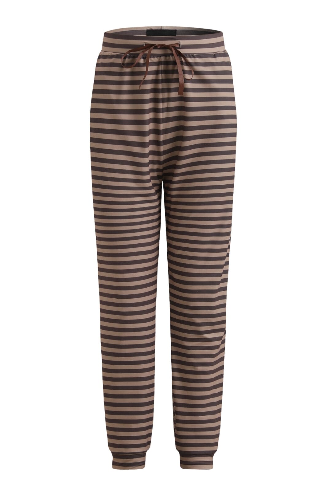 Stripete bukser fra Liberte i brune og beige nyanser. Buksene har ankellengde og er designet med elastikk og snøring i livet. De er laget av et lett og elastisk materiale.