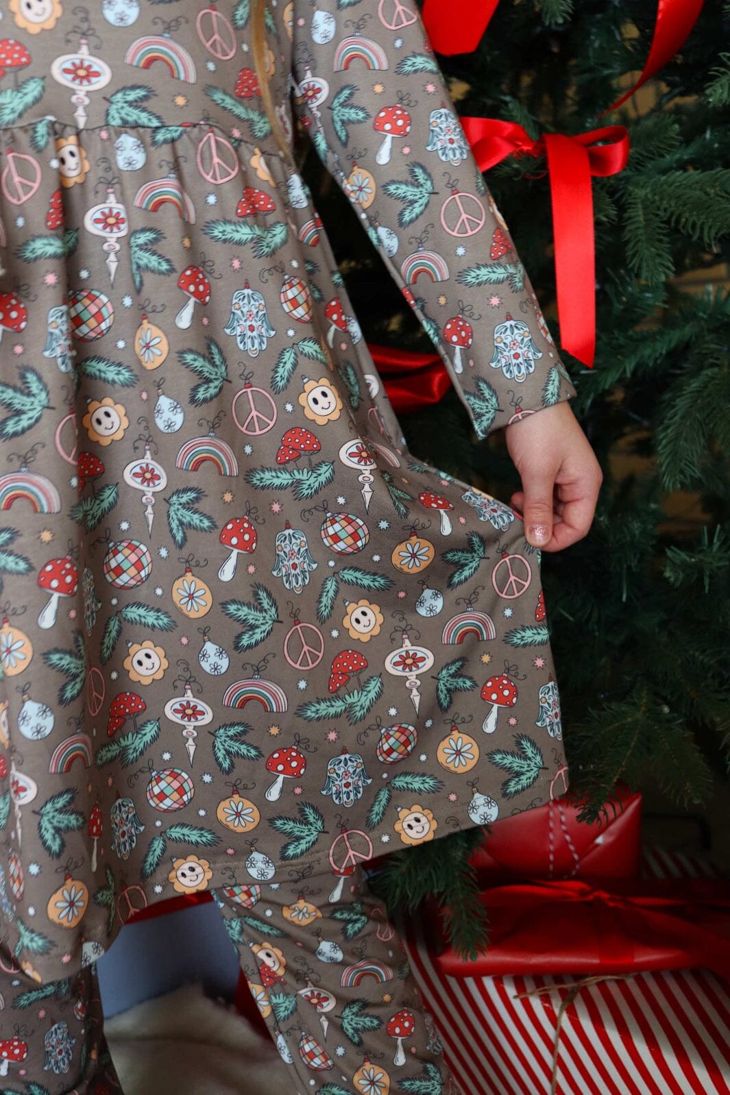 Liberte Ami Alma-Ls-Babydoll-Dress (Kids) 9658 Farge: Smiley Peace Brown
