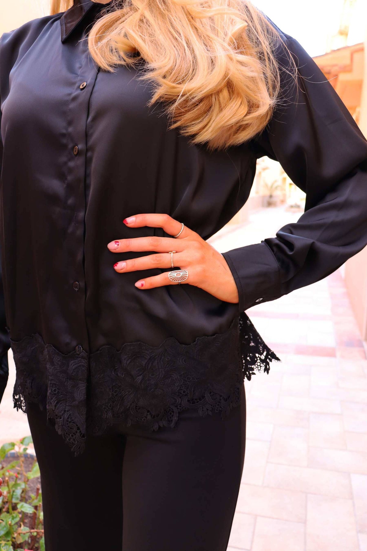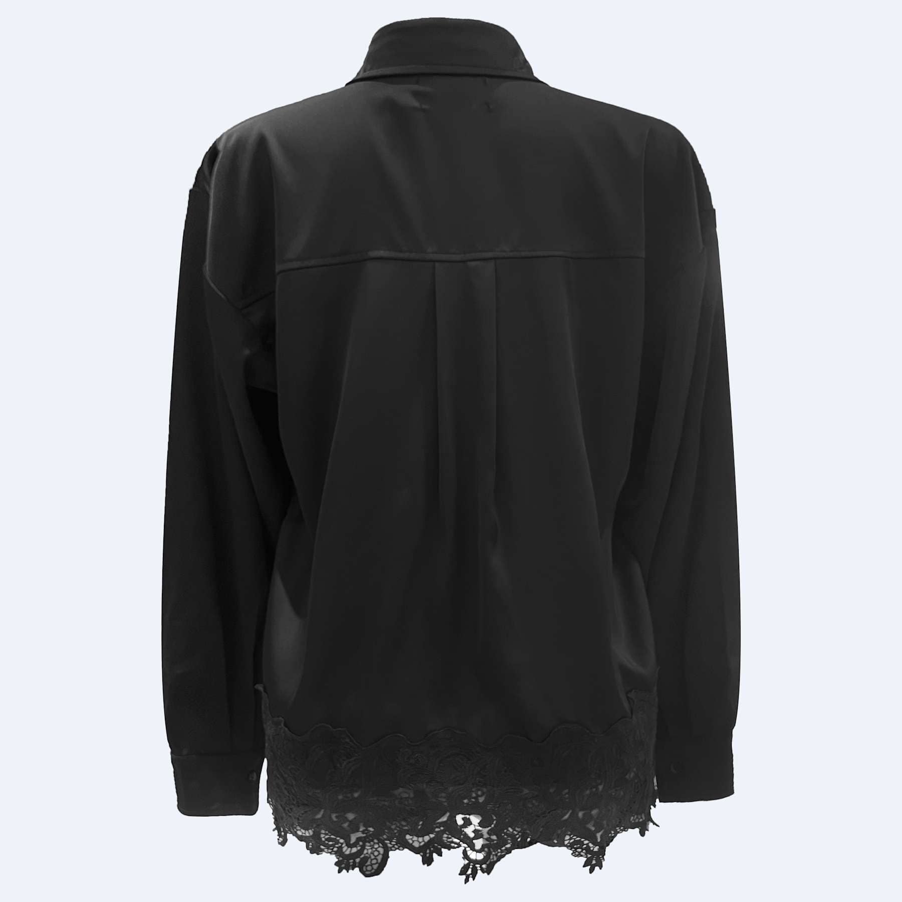 Sort skjorte fra Liberte med lange ermer, knappelukking foran og blondekant nederst. Skjorten har en løs passform og skjortekrage.