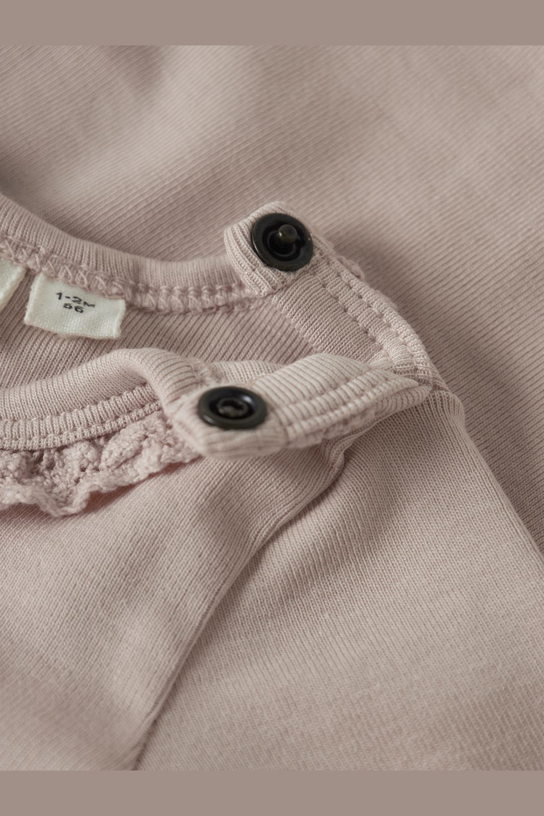 En rosa body fra Lil' Atelier med slim fit-passform. Laget av en blanding av økologisk bomull og Lyocell™ med blondedetalj ved halsutskjæringen.