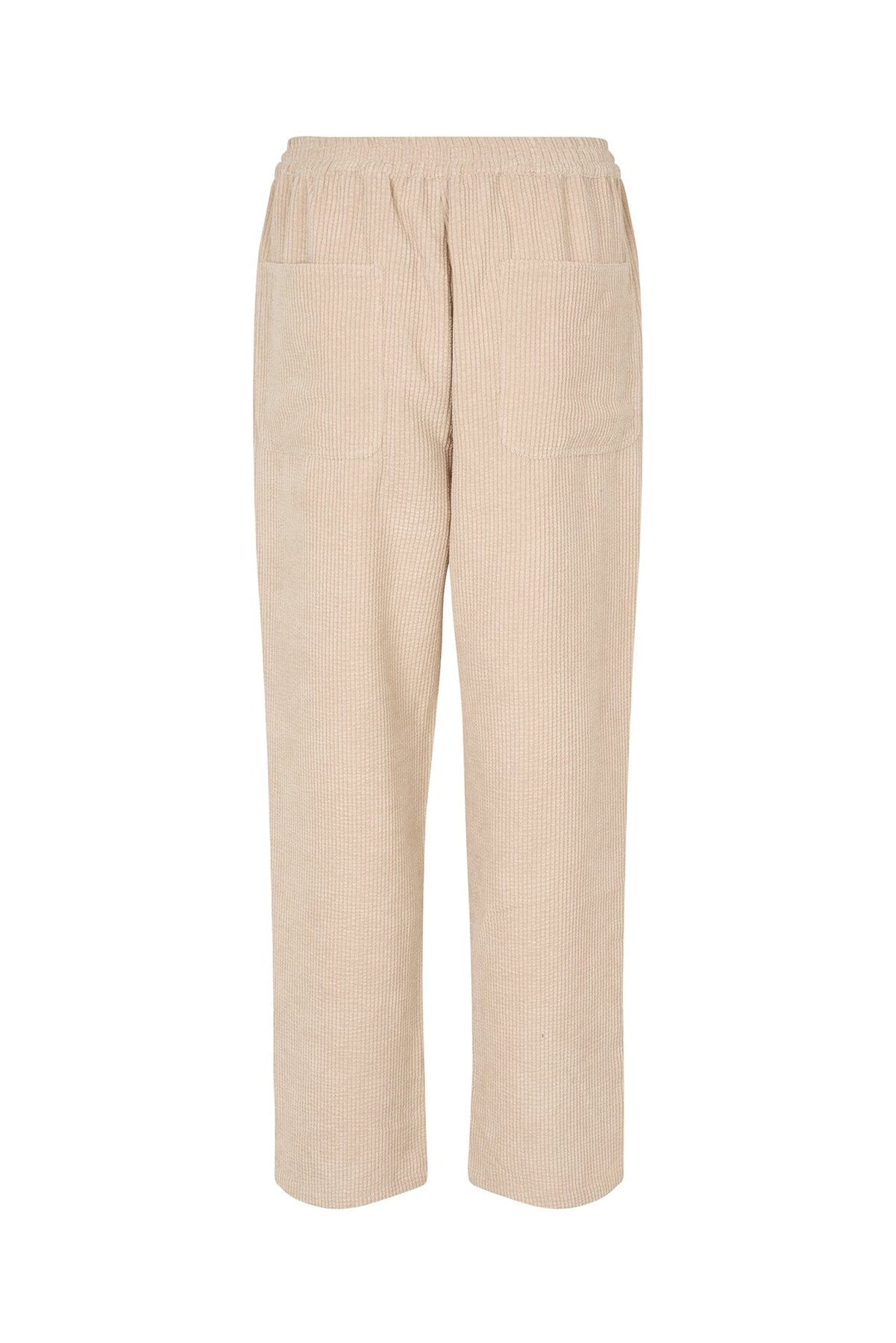 Bukser fra Lollys Laundry i sandfarget stoff med ribbet tekstur. Den elastiske midjen og regular fit gjør buksene behagelige å ha på, både hjemme og i byen.