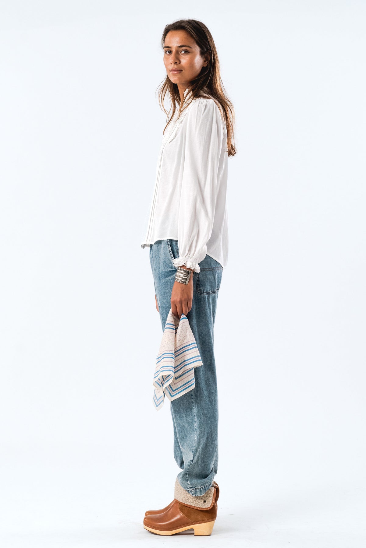 Bandana fra Lollys Laundry i kremhvit med konsentriske striper og blomstermønster. De myke nyansene i krem, rosa og blå skaper et fint samspill i designet.