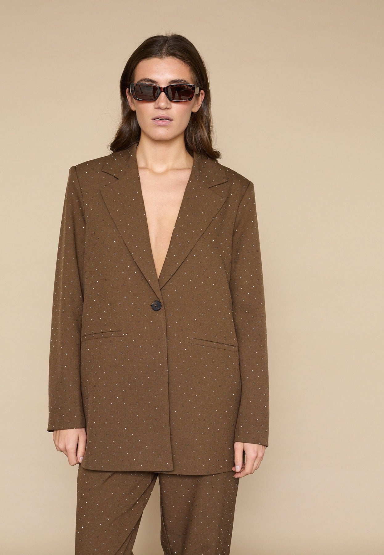 Blazer fra Love & Divine i brun farge med små rhinestone-detaljer. Jakken har et klassisk snitt med jakkeslag og enkel knappelukking.