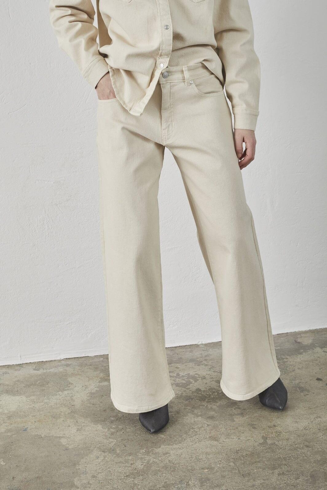 Bukser i lys beige fra Love & Divine med bred ben-design. Den lyse porselensfargen gjør buksene enkle å kombinere med andre farger året rundt.
