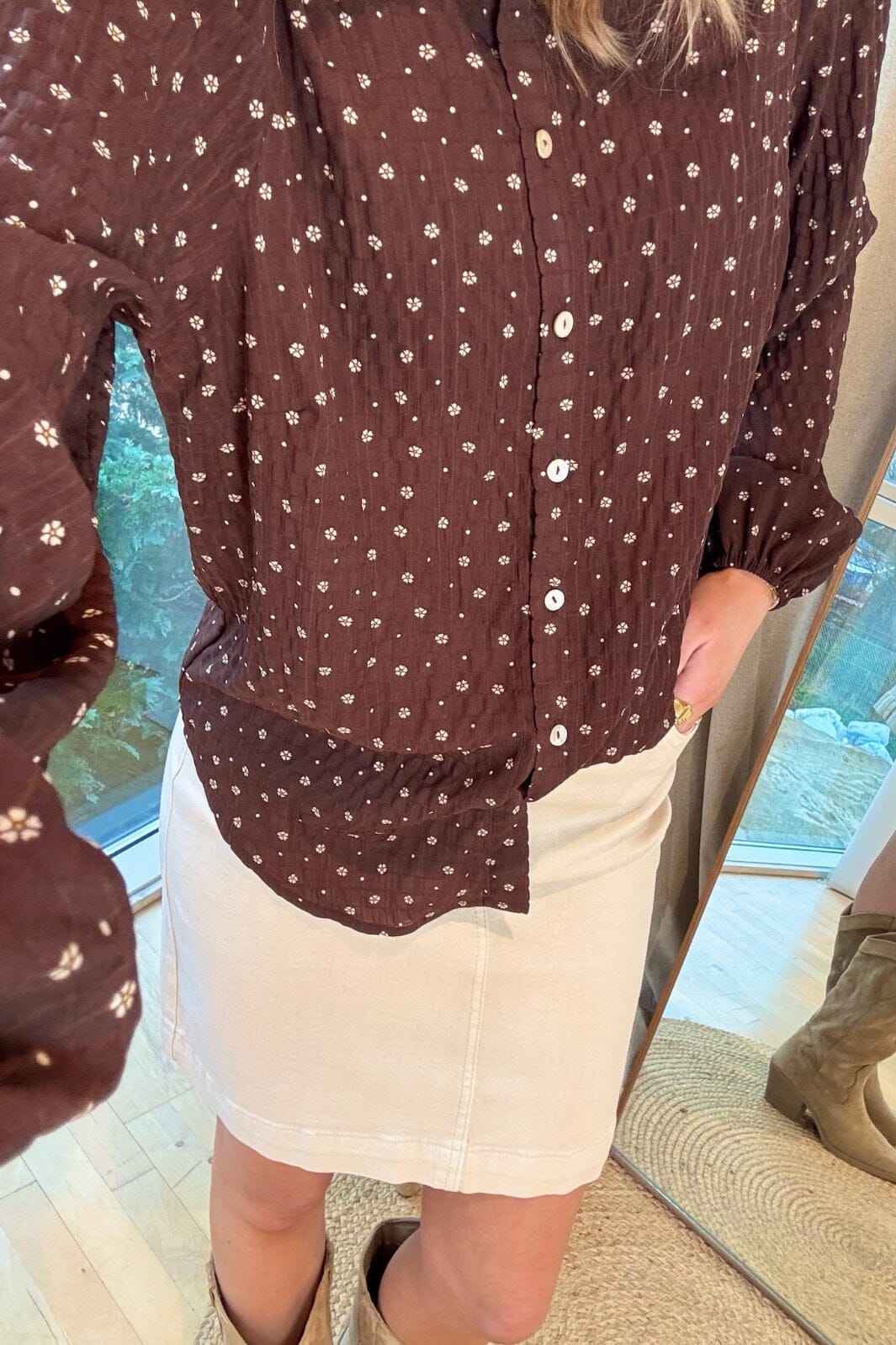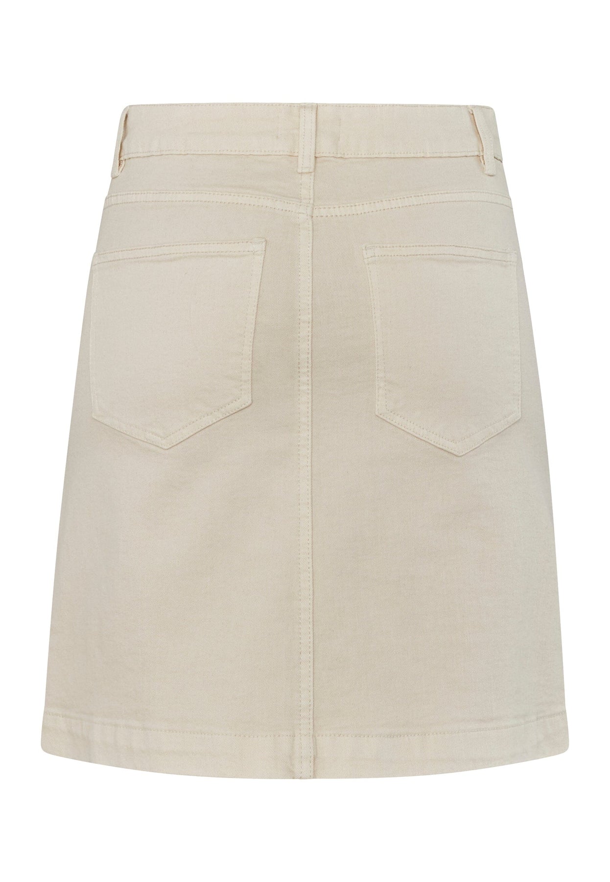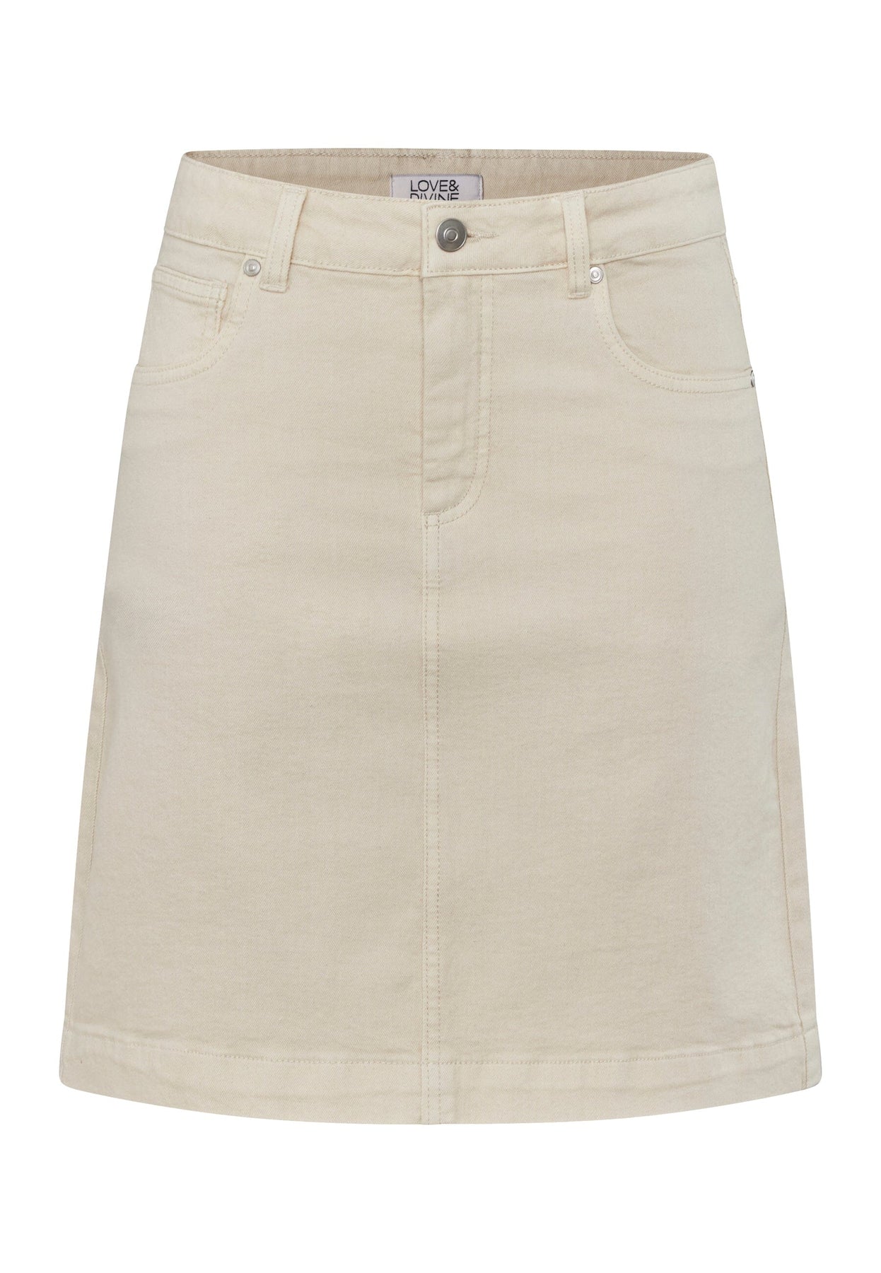 Lys beige denimskjørt fra Love & Divine i klassisk design. Skjørtet har praktiske lommer både foran og bak samt knapp- og glidelåslukking.