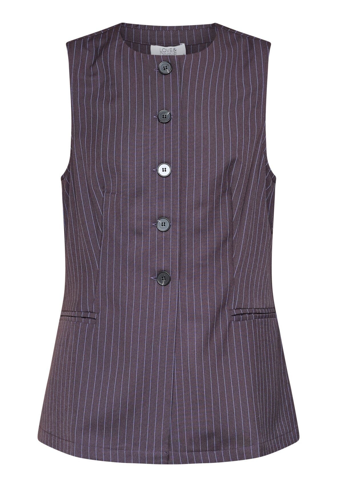 Ermeløs vest fra Love & Divine med blå pinstriper. Vesten passer til både formelle møter og festlige anledninger.