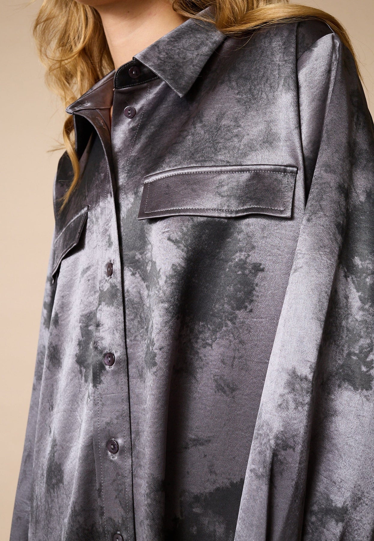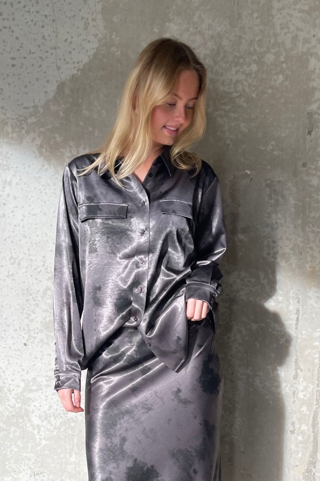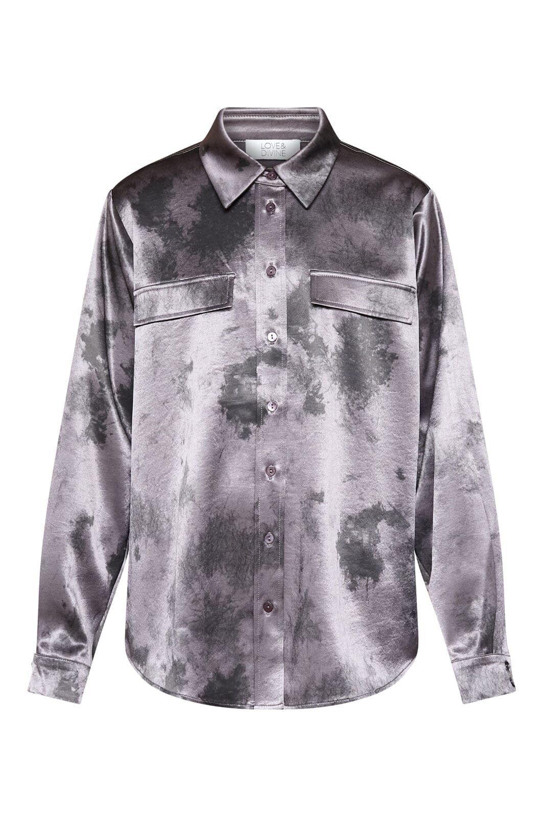 Skjorte fra Love & Divine i grå med et skinnende marmormønstret print. Skjorten har en oversized passform og klassisk skjortekrage.