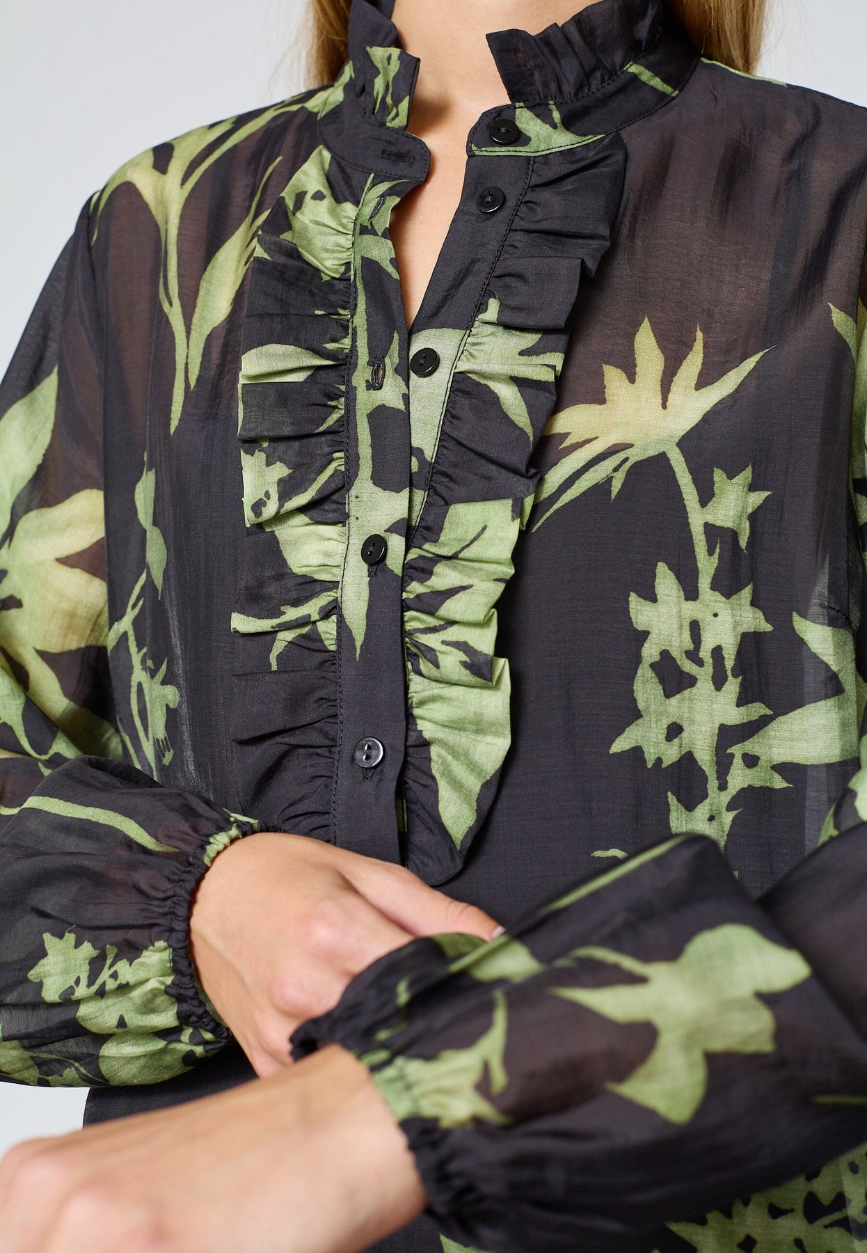 - Stående krage med volanger