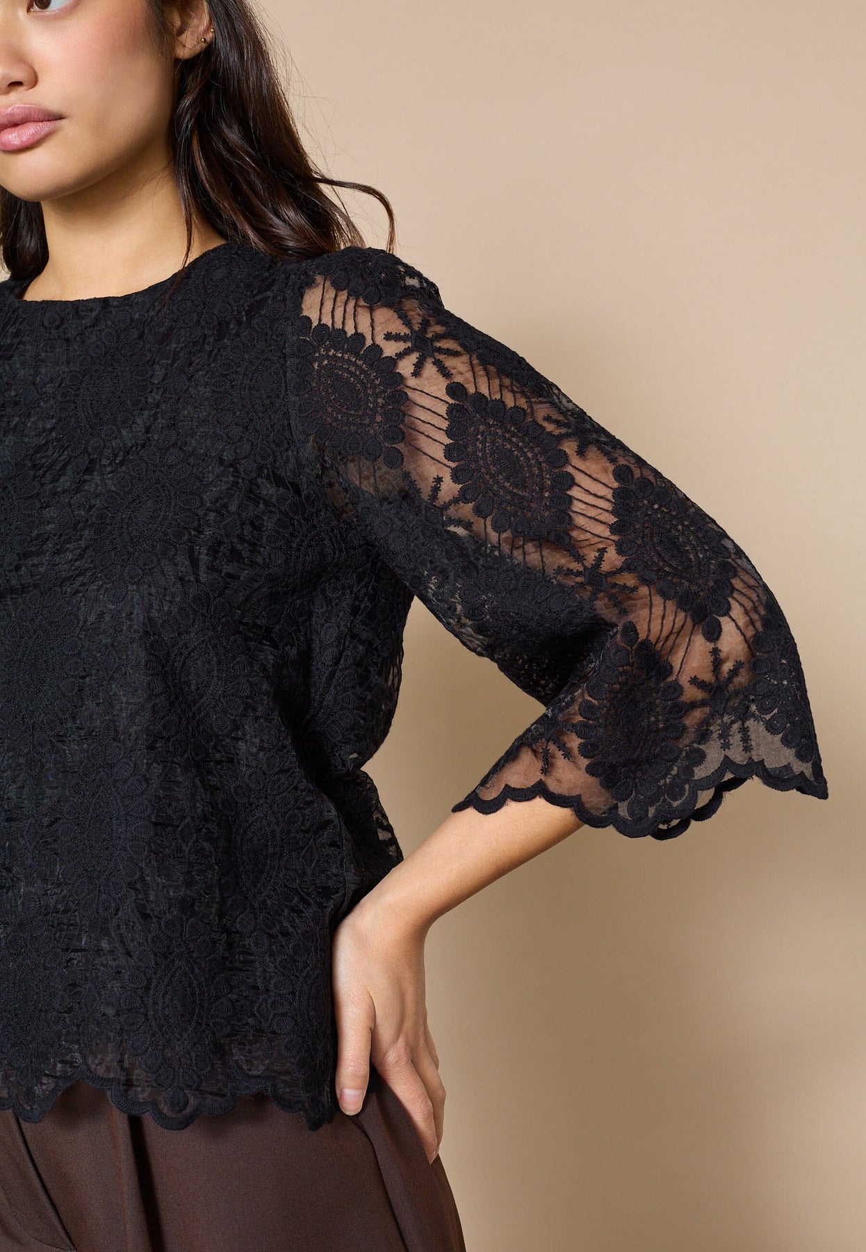 • Trekvartlange ermer med blondemønster