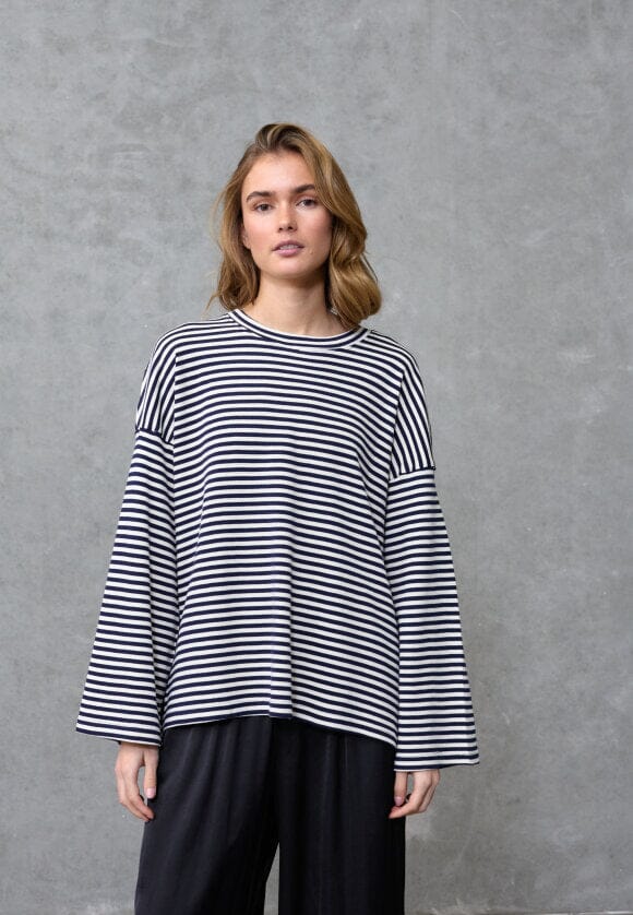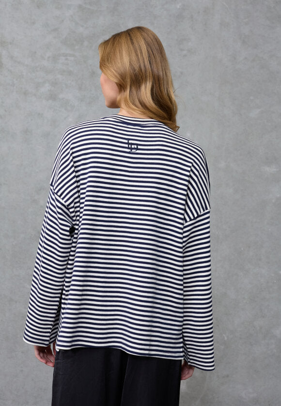 Stripet bluse fra Love & Divine i krem og mørkeblå. Blusen er laget av 100 % bomull og har et klassisk stripet mønster med broderidetaljer.