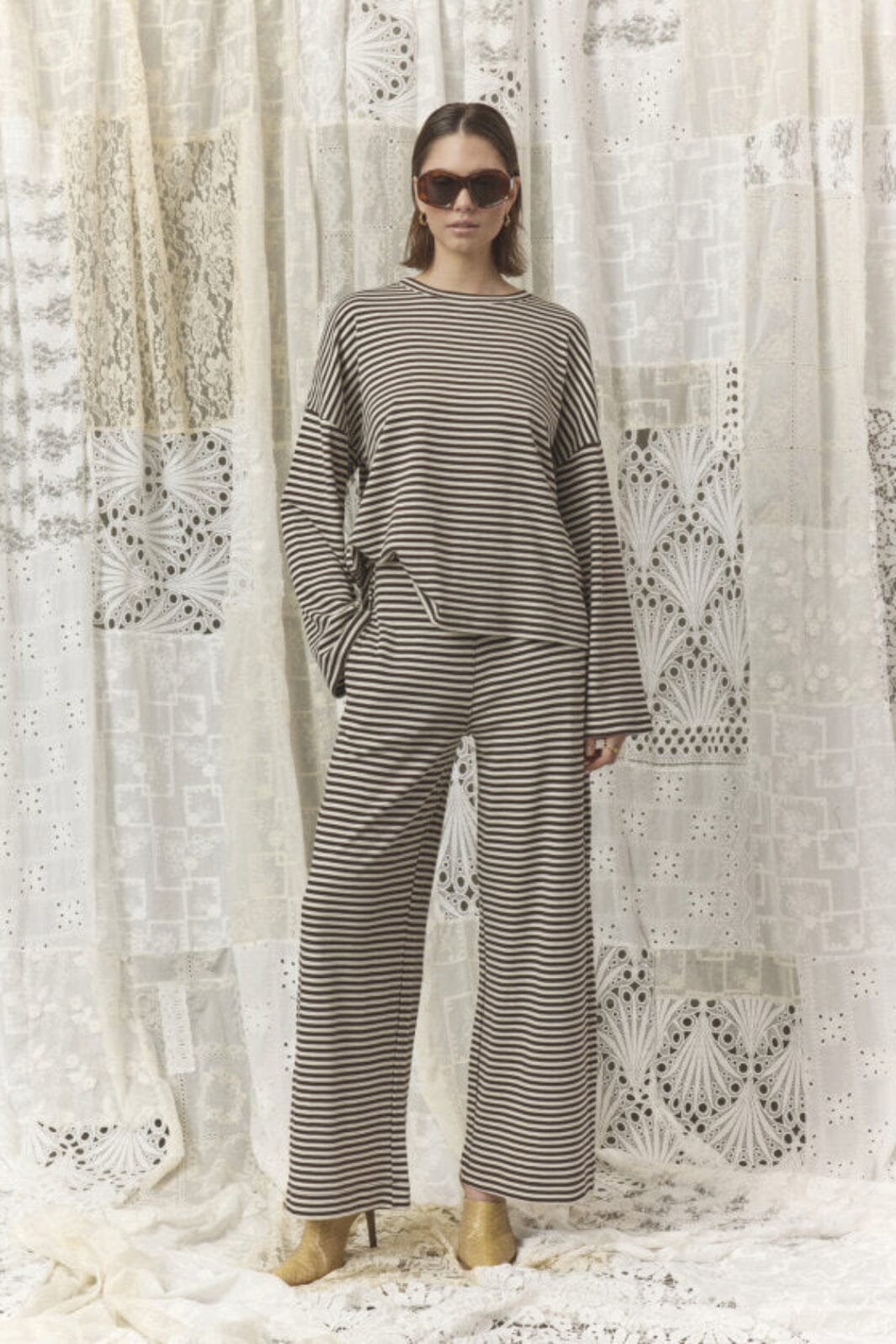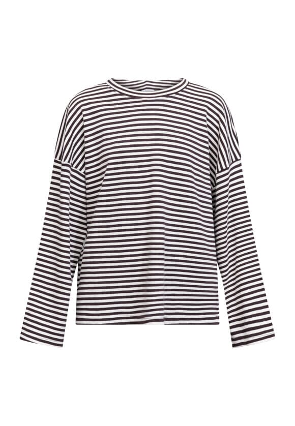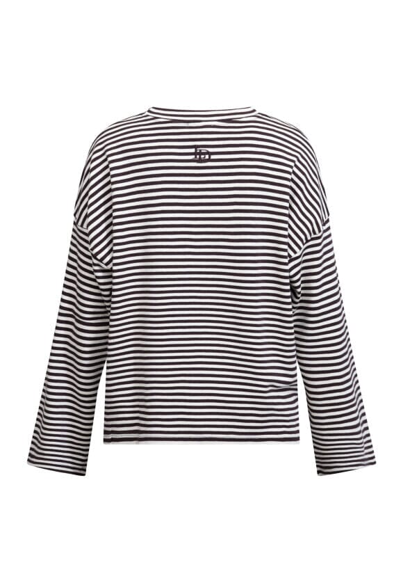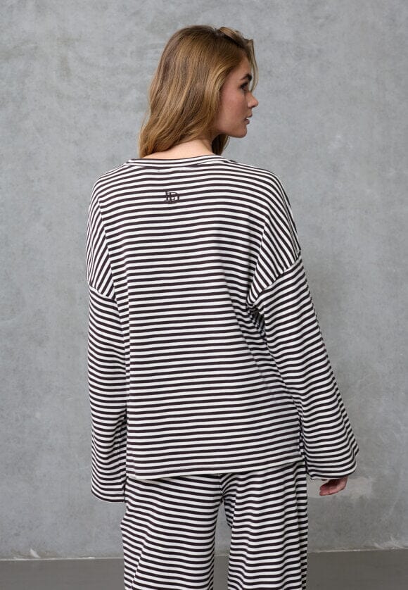 Stripet topp fra Love & Divine i krem og brun. Toppen er laget av 100 % bomull og har lange ermer med rund halsutringning.