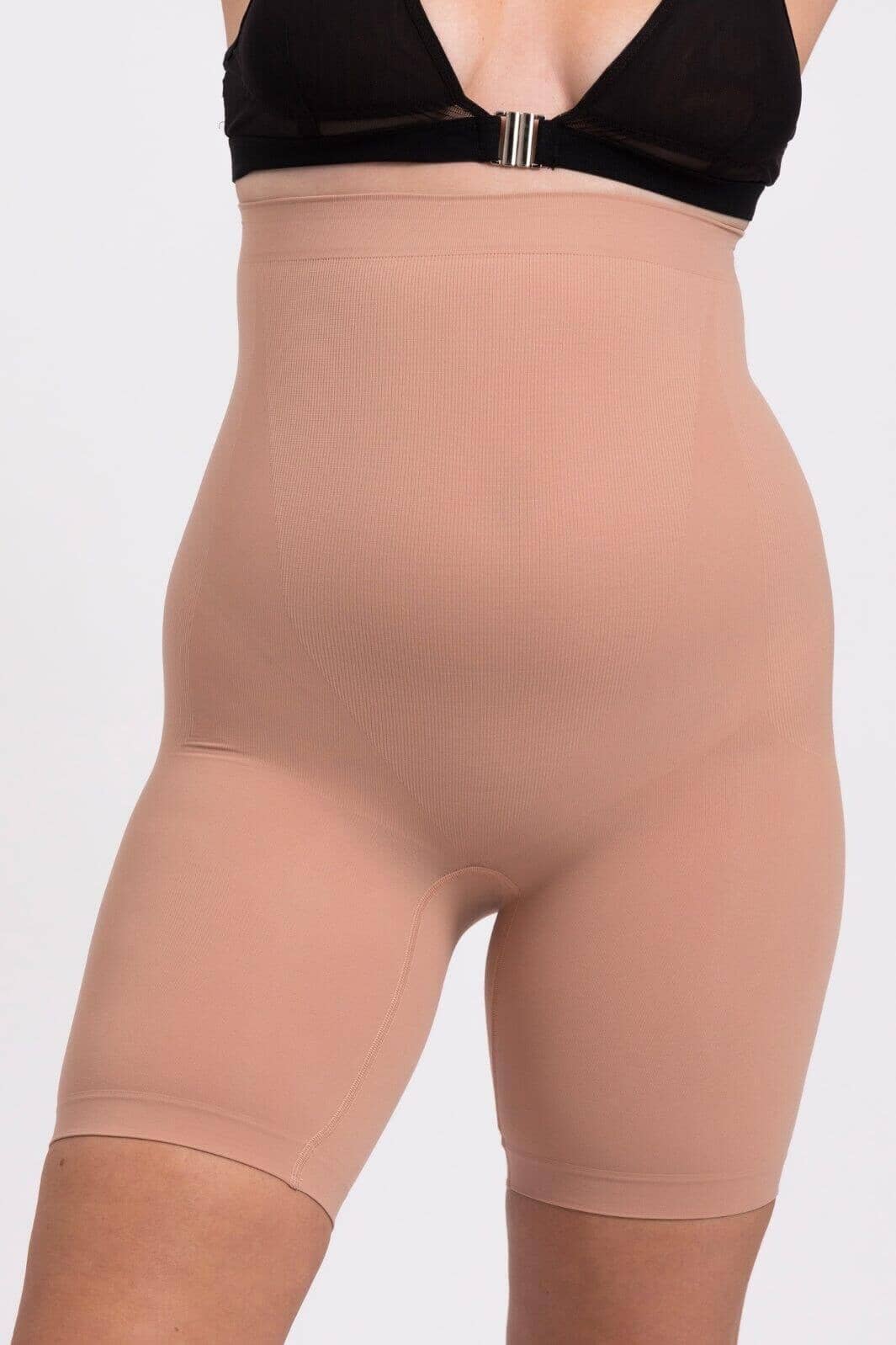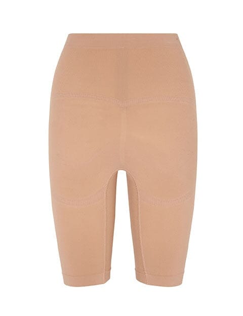Formende shorts fra Lykkeland Ateliér i beige. Shortsene har høy midje med innvendig silikonbånd og en tettsittende passform som former magen, sidene og lårene.