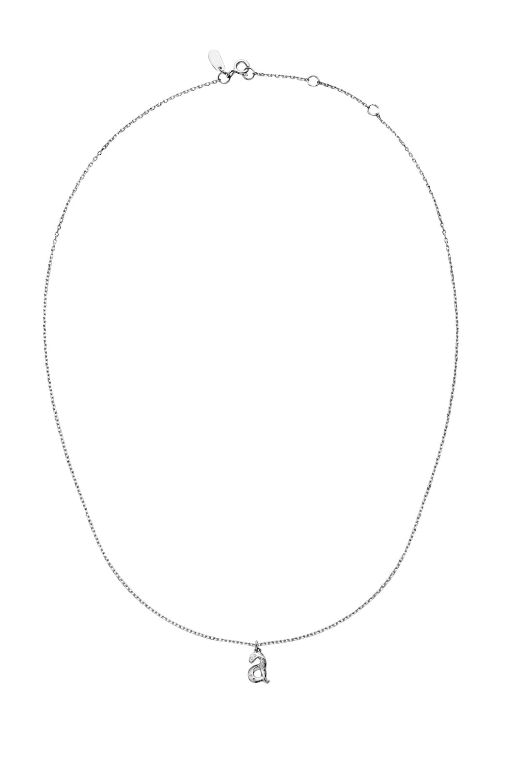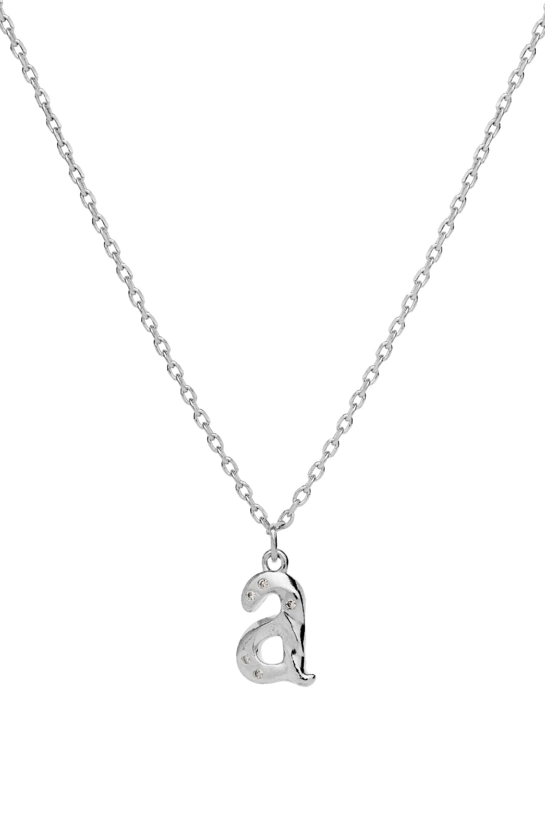Sølvhalskjede fra Maanesten med bokstaven 'a' som vedheng. Laget av resirkulert sterlingsølv med små dekorative detaljer på vedhenget.