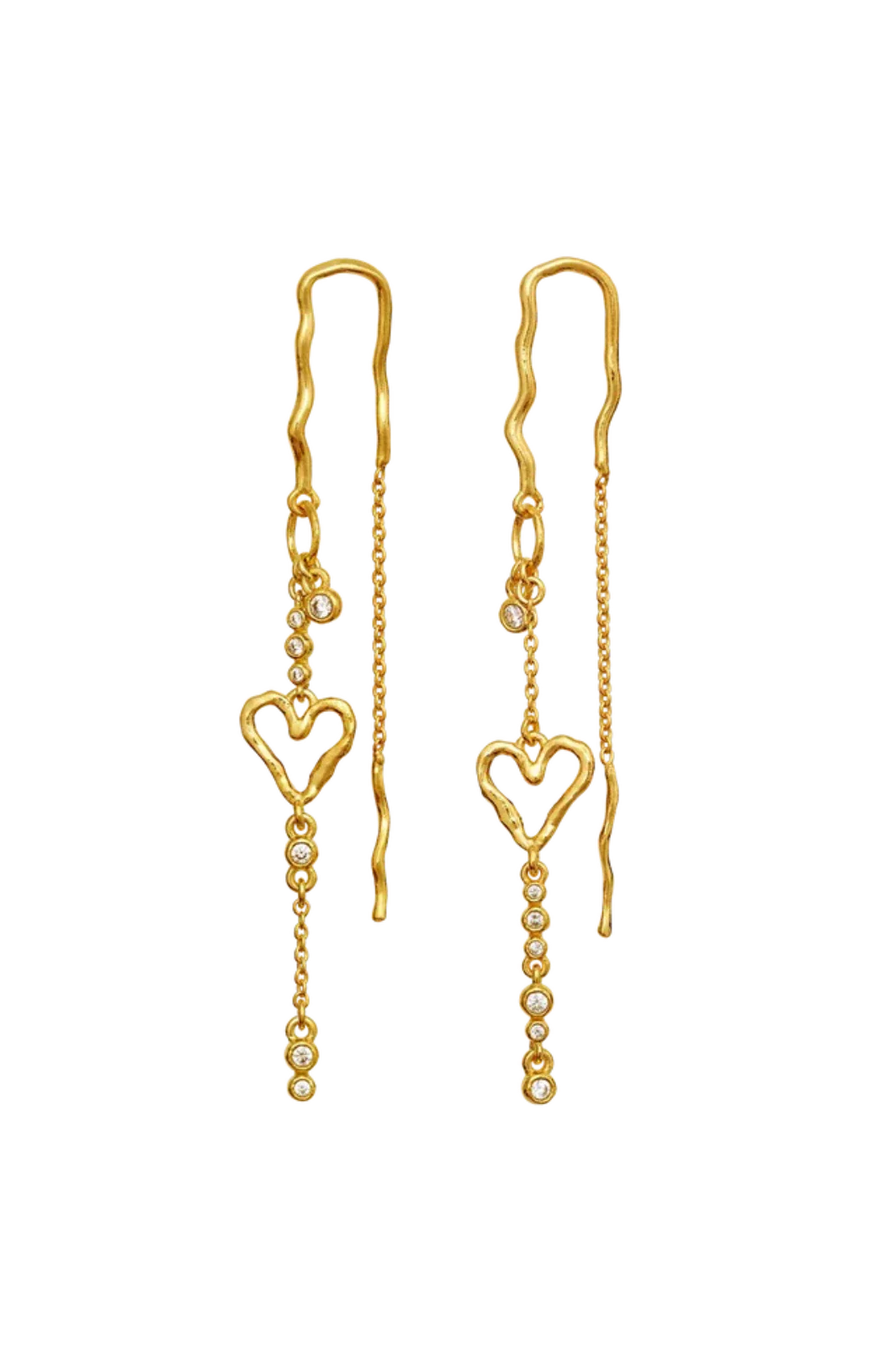 Øredobber fra Maanesten, laget av resirkulert sterlingsølv belagt med 18 karat gull. Øredobbene er prydet med hvite zirkoner i en slank silhuett.