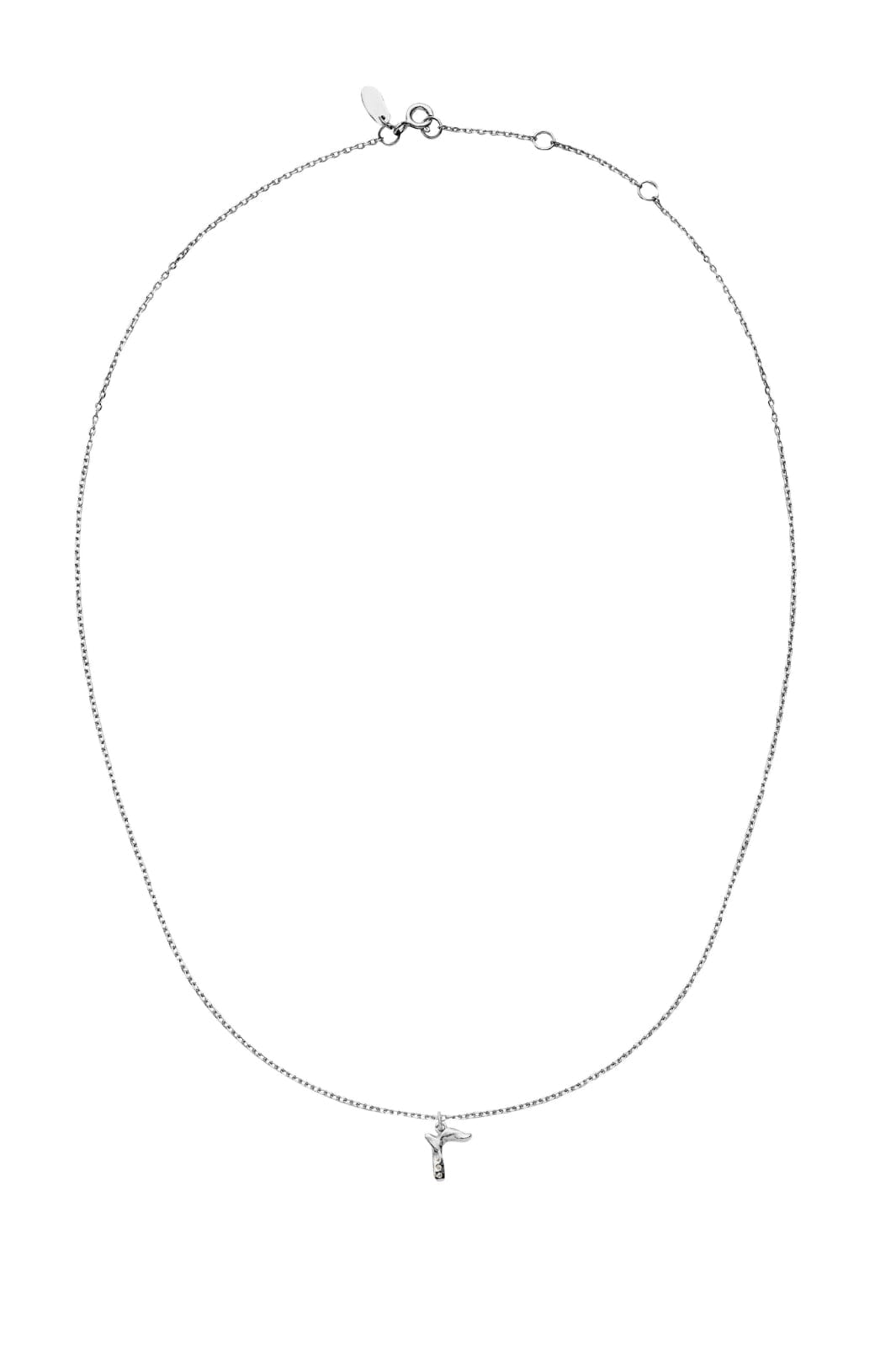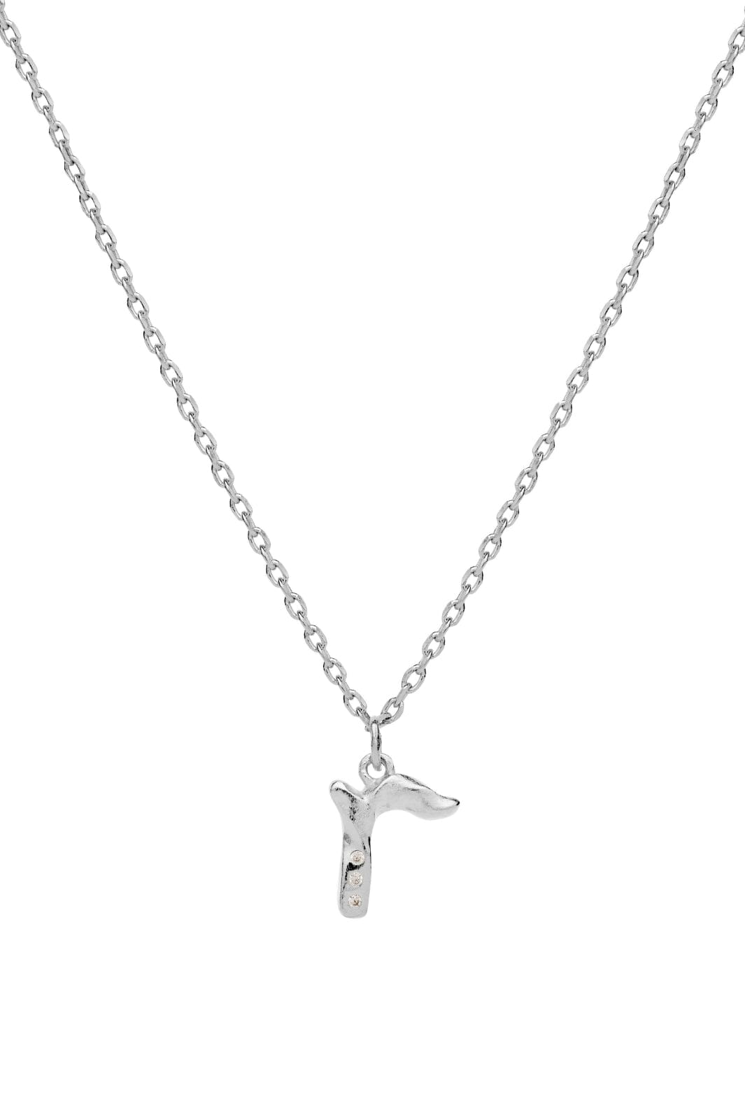 Sølvkjede fra Maanesten med R-bokstavvedheng. Kjedet er laget av resirkulert sterlingsølv med små glitrende detaljer i vedhenget.