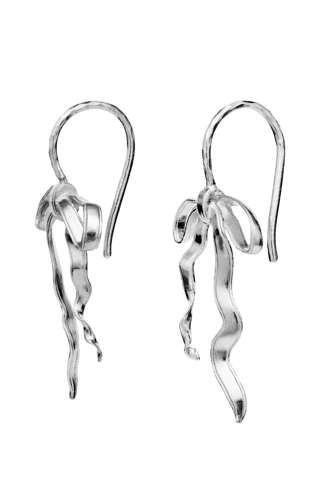 Sølvøredobber fra Maanesten med en sløyfeformet design og bølgende bånd. De er håndlaget av resirkulert sterlingsølv med en matt overflate.