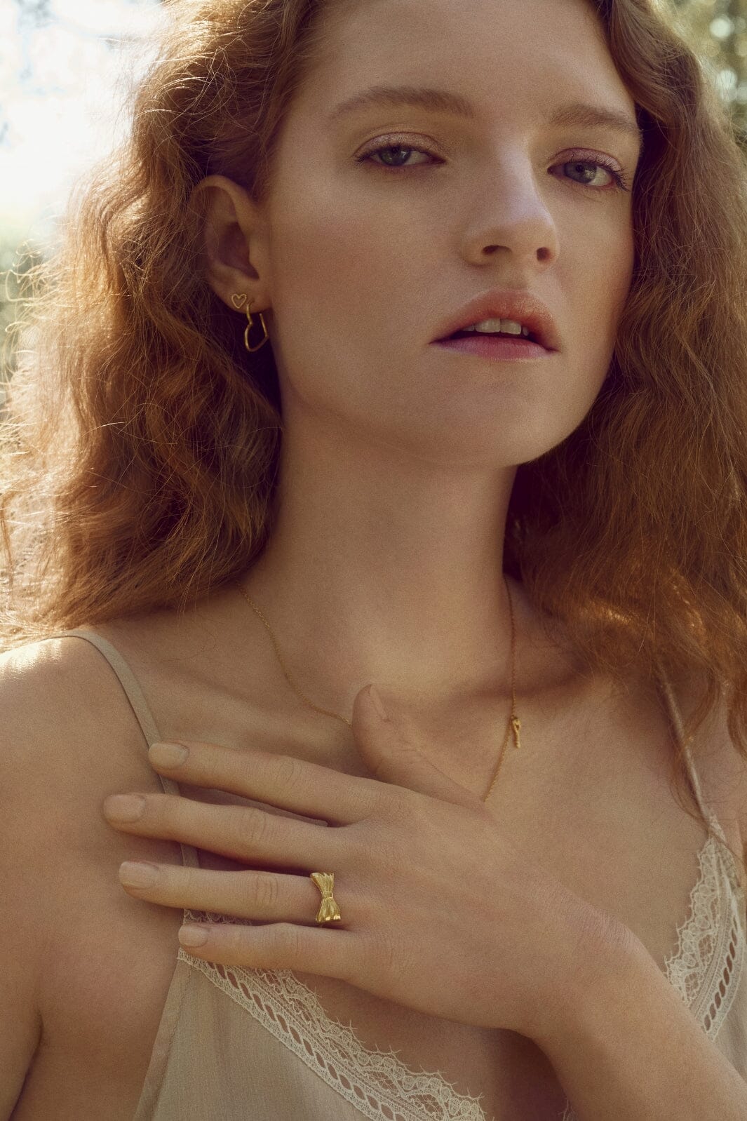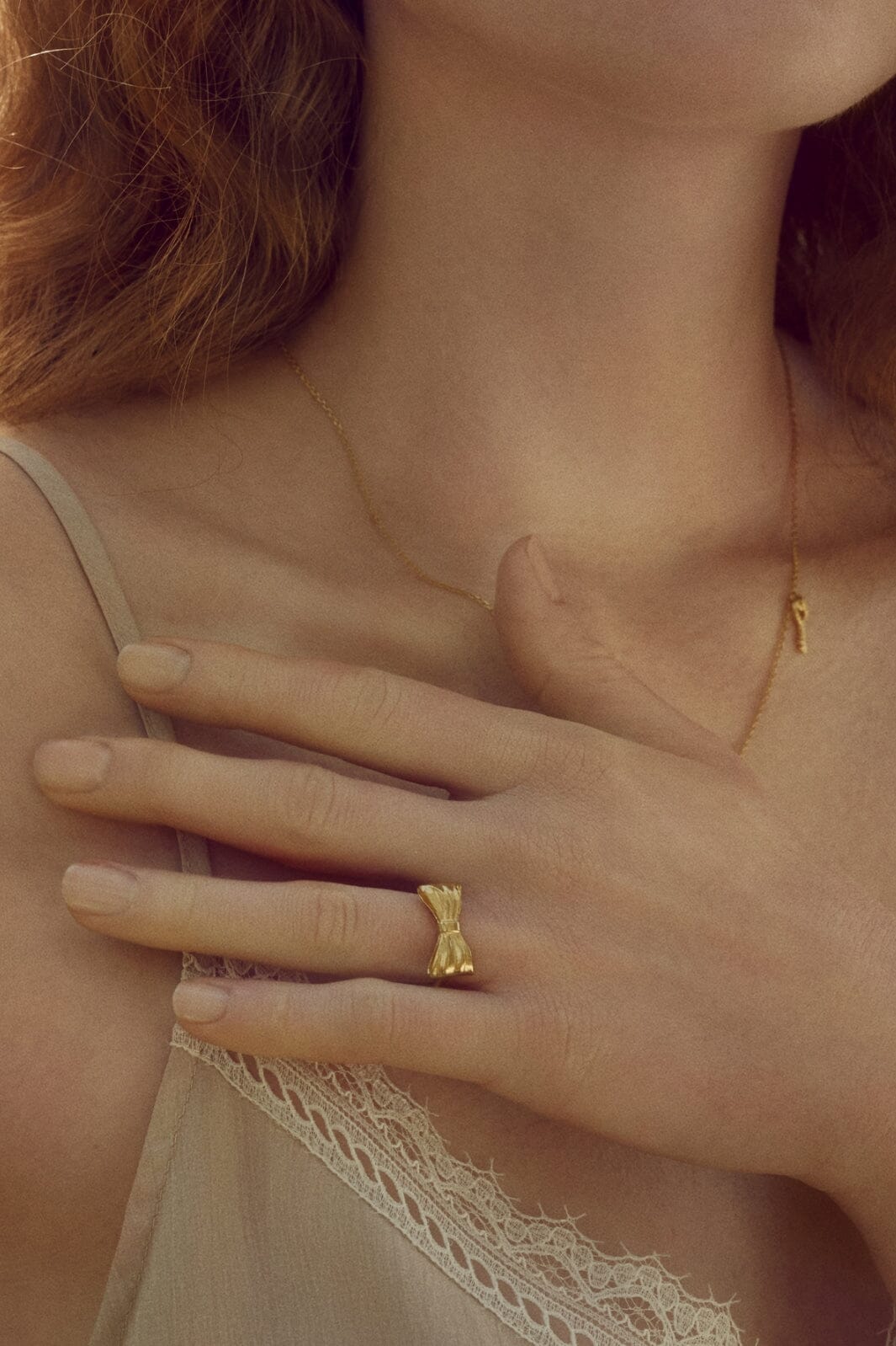 Gullbelagt ring fra Maanesten med sløyfedesign. Ringen er laget av resirkulert sterlingsølv med 18 karat gullbelagt, som gir en varm gyllen overflate.