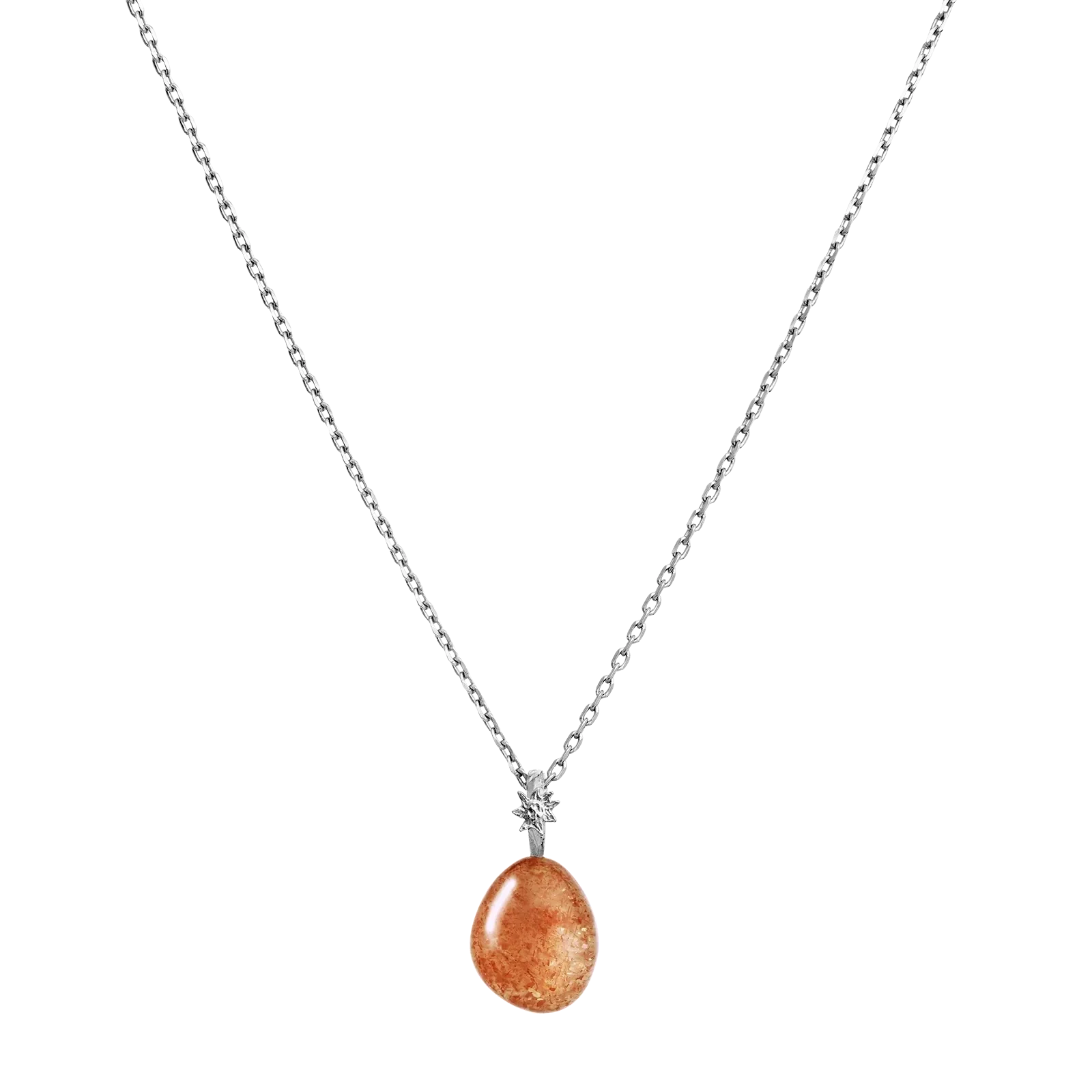 Anheng fra Maanesten med en dråpeformet, oransje stein. Anhenget har et lite stjernedesign øverst som forbinder steinen med kjeden.