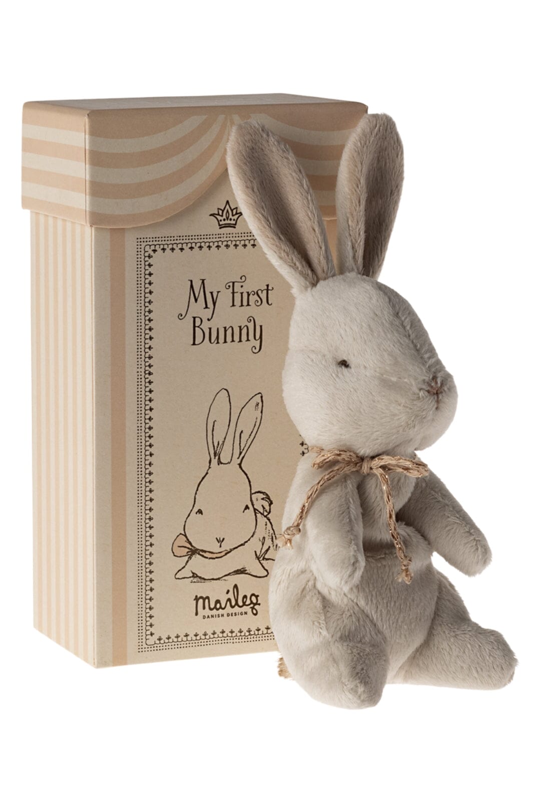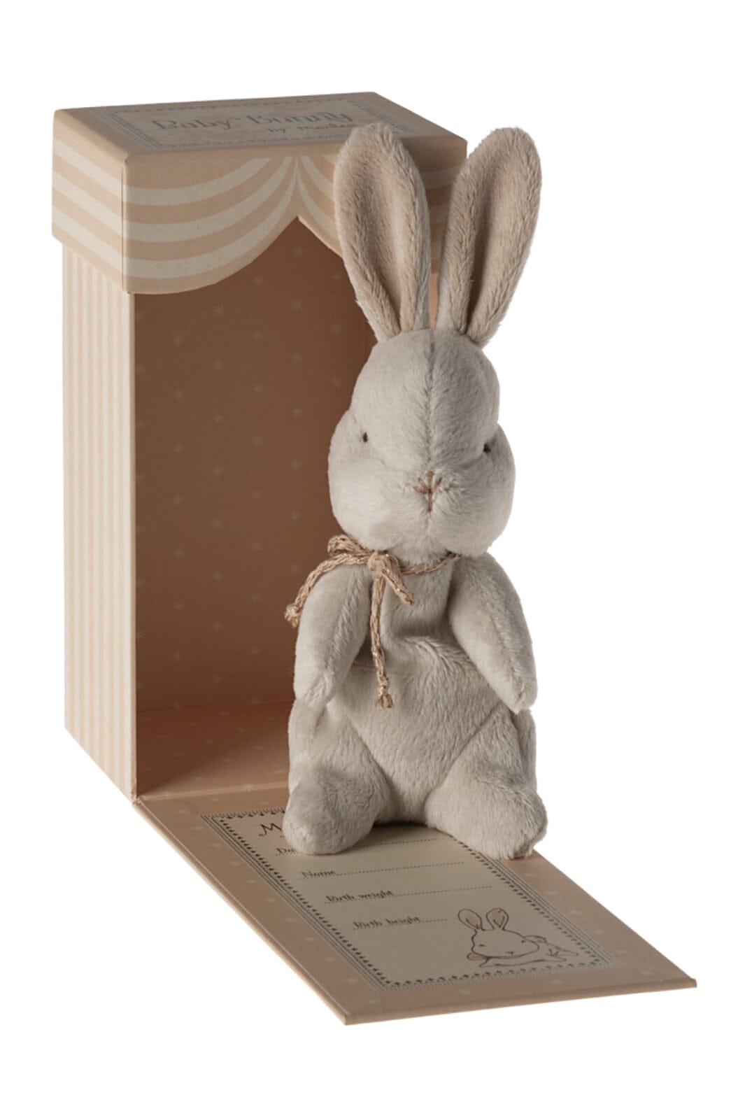 Råhvit bamsekanin fra Maileg i myk plys med et bånd rundt halsen. Leveres i en gaveeske med plass til å notere fødselsopplysninger.