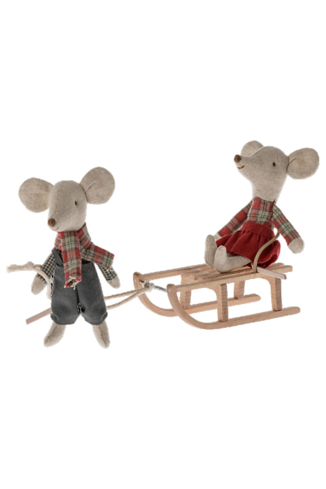 Slæde fra Maileg i træ, som passer til de små mus. Behold snoren på, så det er nemt at trække slæden rundt i "sneen".