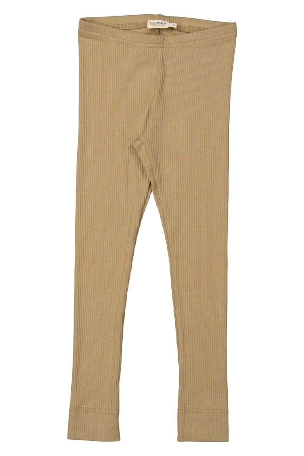 Beige leggings fra MarMar med ribbet tekstur. Den elastiske midjen og ankellengden gir en god passform for bevegelse og lek.