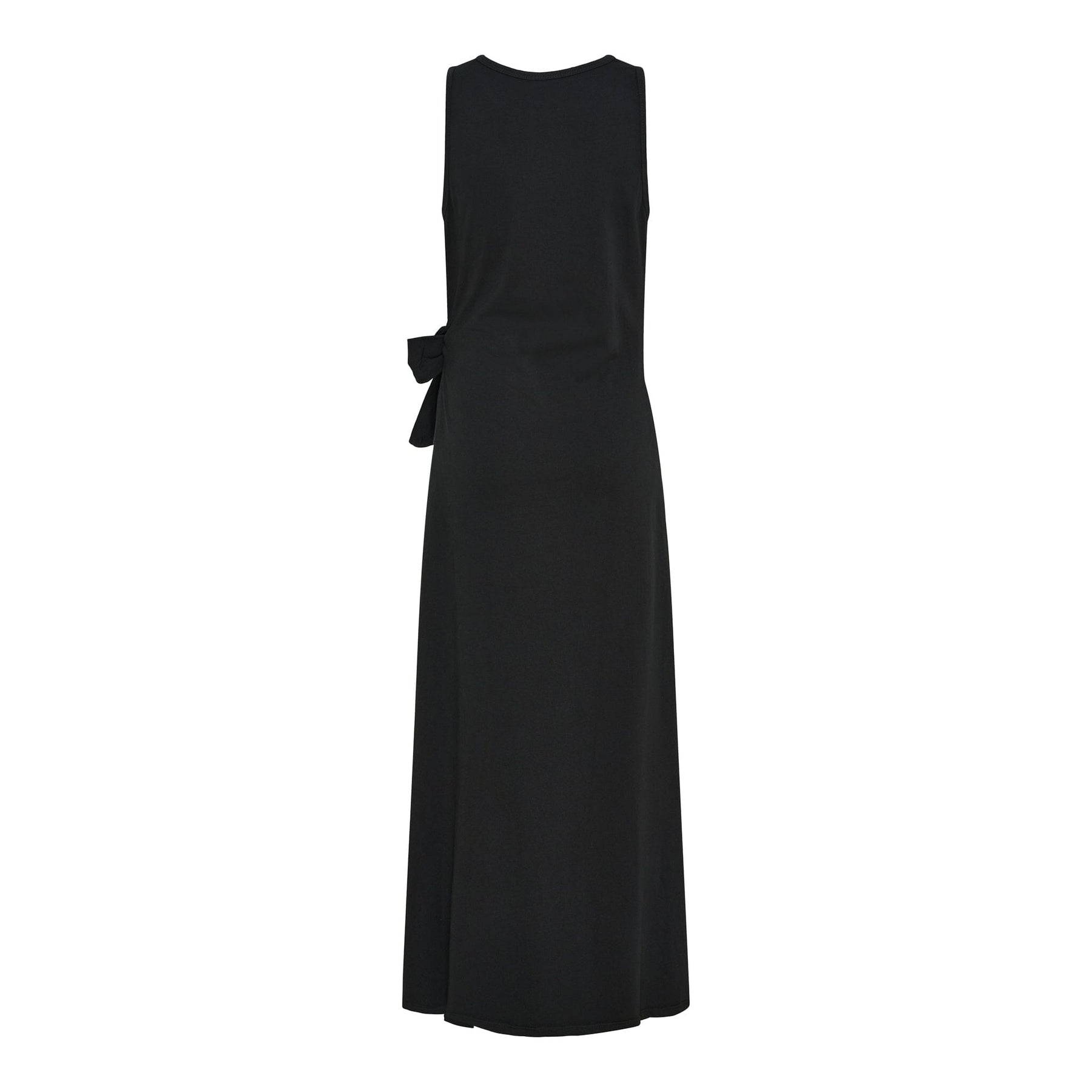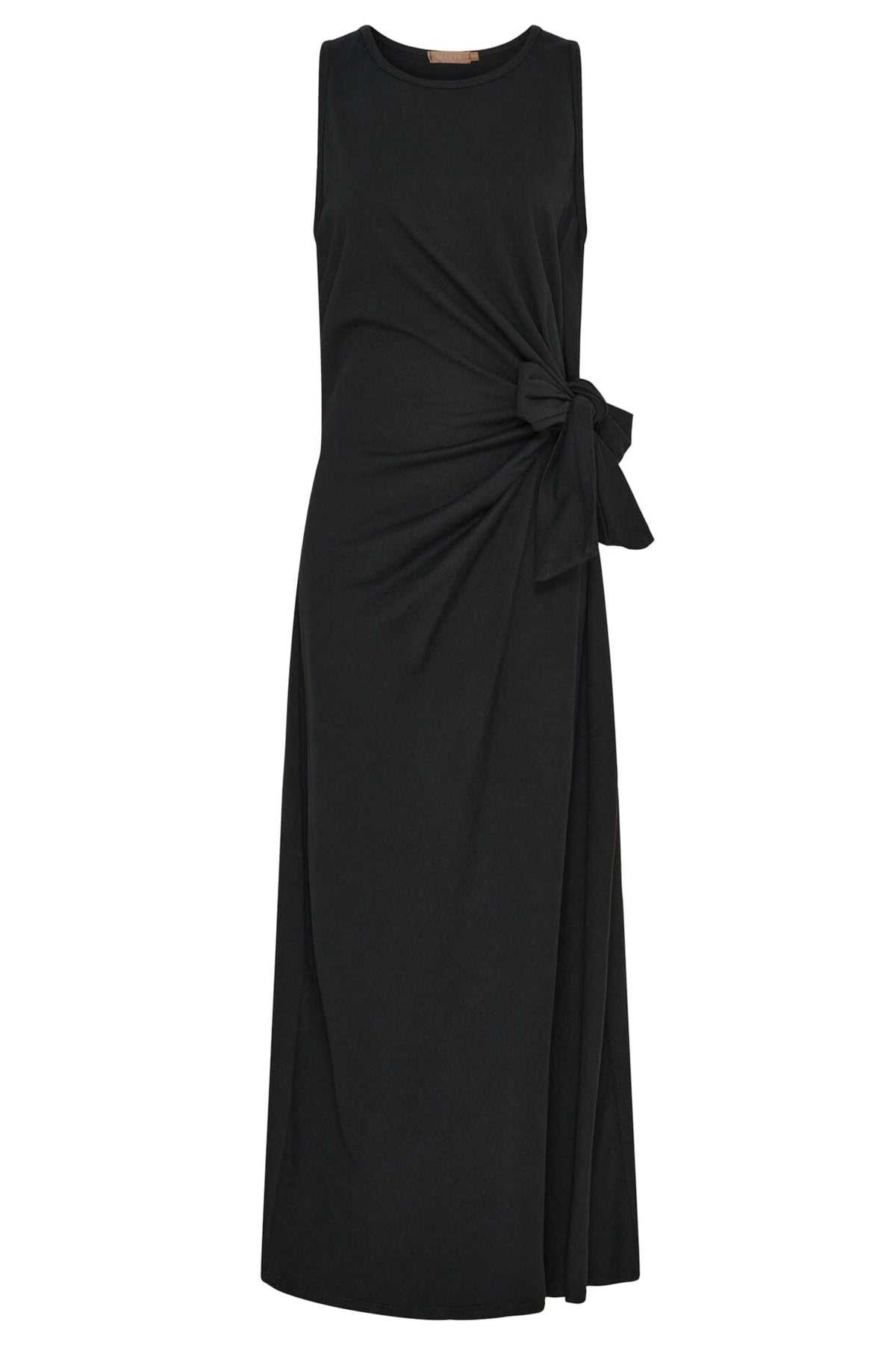 Svarte gulvlange kjole fra Marta Du Chateau med brede stropper og rund hals. Kjolen har en karakteristisk knutedetalj på siden som skaper et enkelt og rent uttrykk.