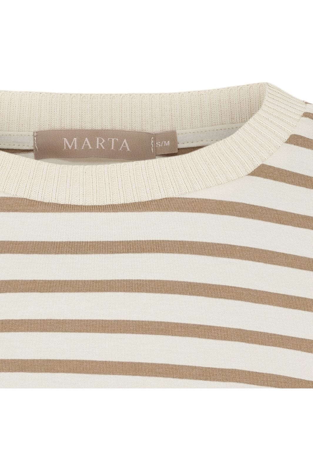 Stripet t-skjorte fra Marta Du Chateau i beige og brune nyanser. T-skjorten har en løs passform med 3/4 ermer og rund hals.