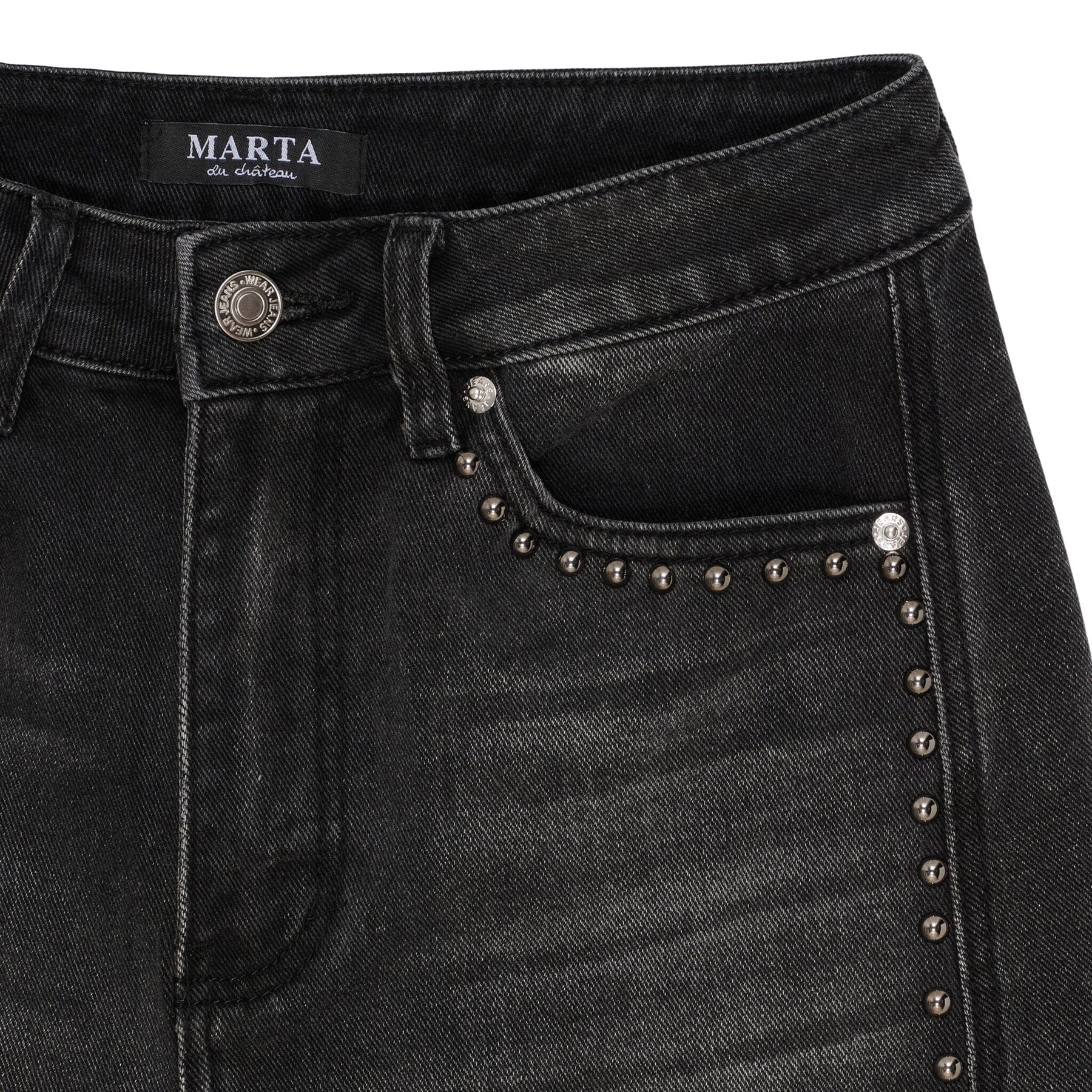 Grå jeans fra Marta Du Chateau med acid wash-effekt og dekorative nagler langs sidene. Buksene har en høy midje og løs passform med legg-lengde.