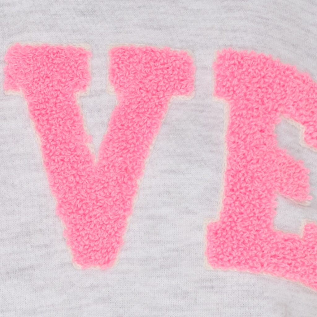 En lys grå sweatshirt fra Marta Du Chateau med rosa LOVE-broderi på forsiden. Sweatshirten har en melert overflate og en avslappet passform.