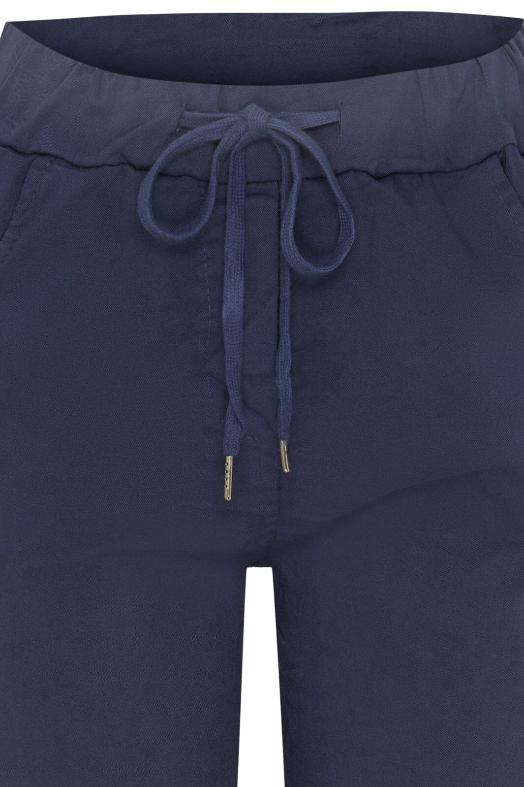 Mørkeblå bukser fra Marta Du Chateau med løs passform og lengde til midten av leggen. Buksene har snøredetalj i livet samt praktiske for- og baklommer.