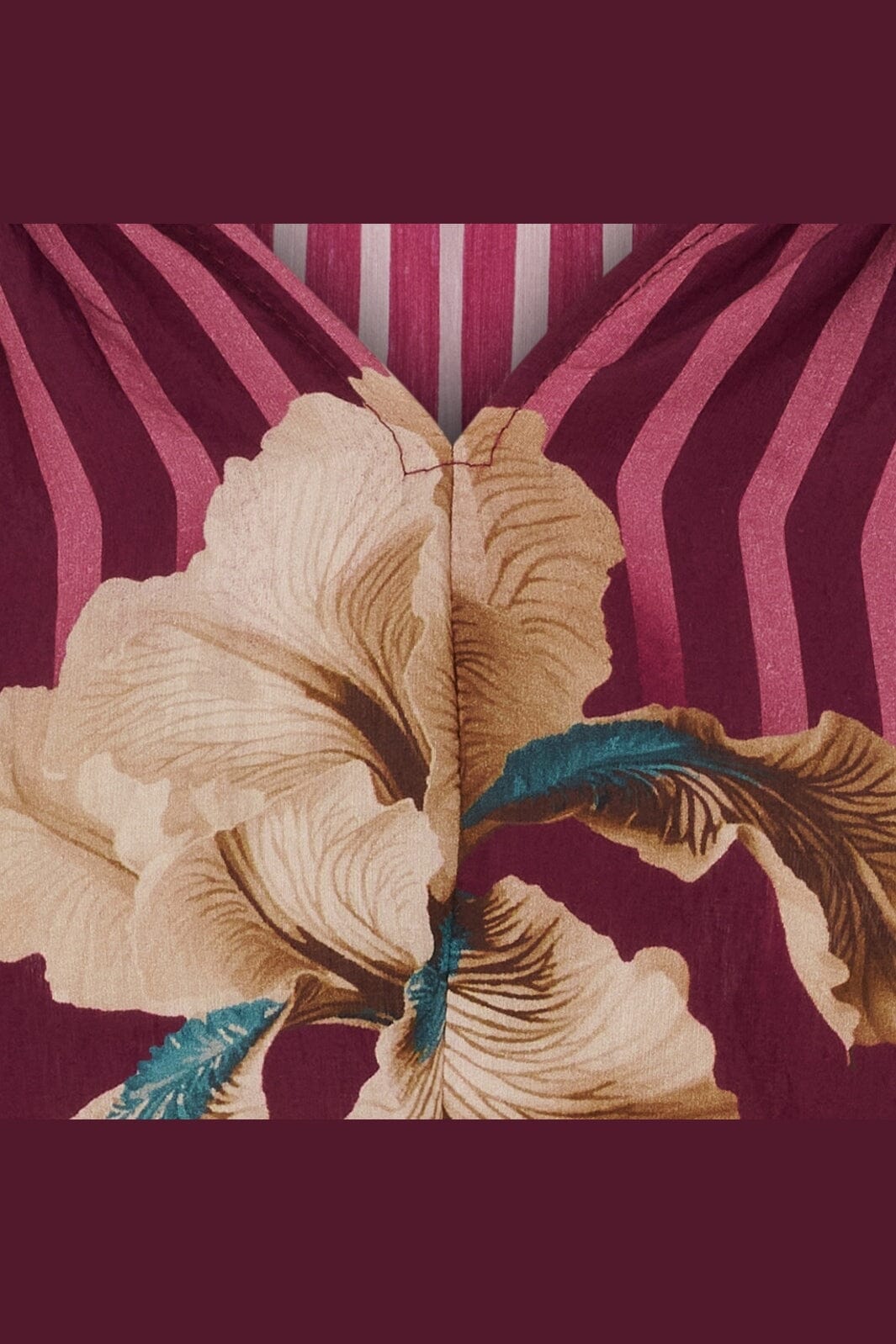 Skjorte fra Marta Du Chateau, laget av 100 % viskose i en dyp bordeauxnyanse med et fargerikt blomstertrykk i beige og tealtoner.