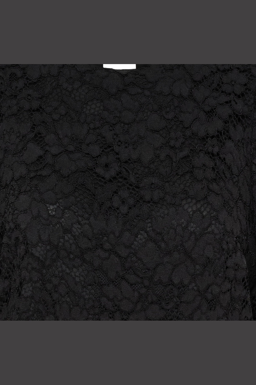 Svart knelang kjole fra Marta Du Chateau med blomsterblondemønster. Kjolen har puffede ermer, rund hals og knapplukking i ryggen.
