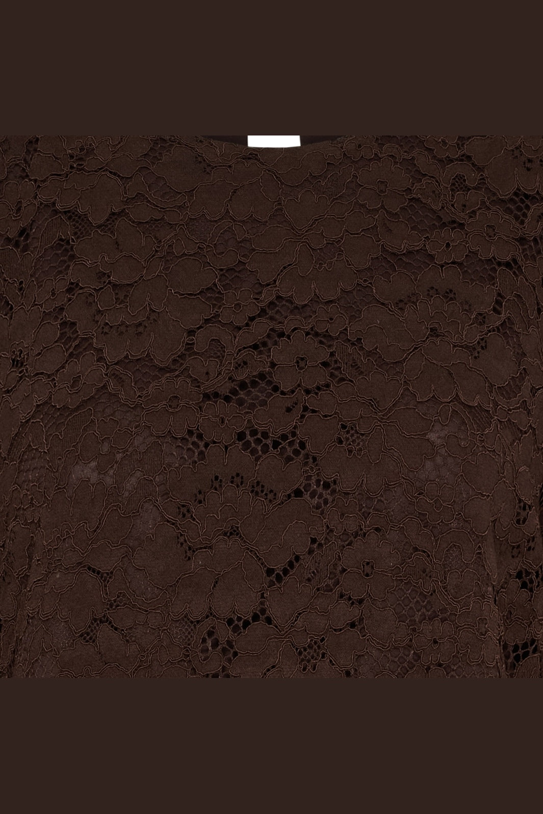 Brun blondekjole fra Marta Du Chateau med blomstermønster. Kjolen har korte ermer, rund hals og går til låret. En knappelukking bak gjør den lett å ta av og på.