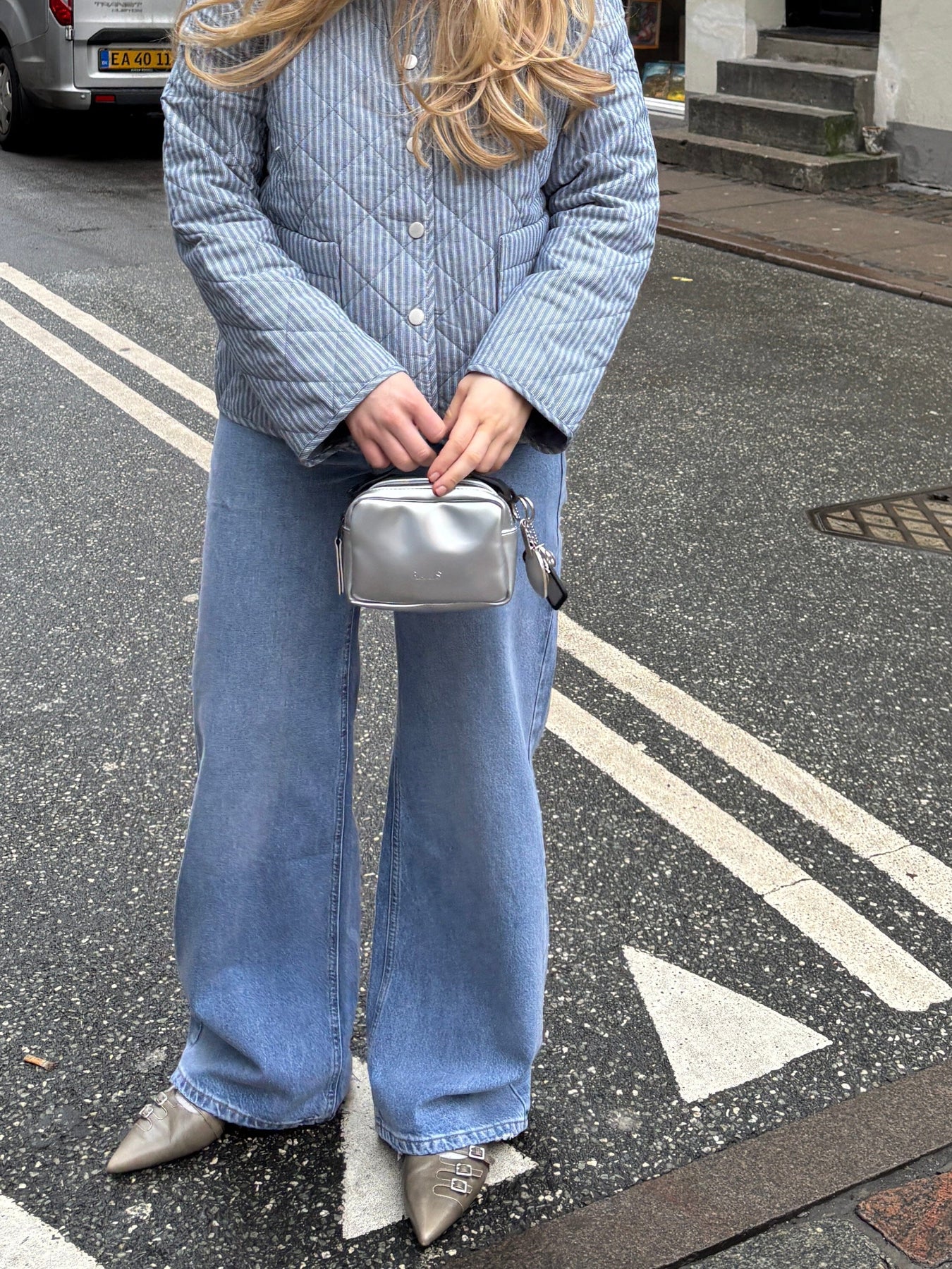 Lys blå jeans fra MbyM med vide ben og høyt liv. Buksene har en løs passform og er laget av 100 % bomull.