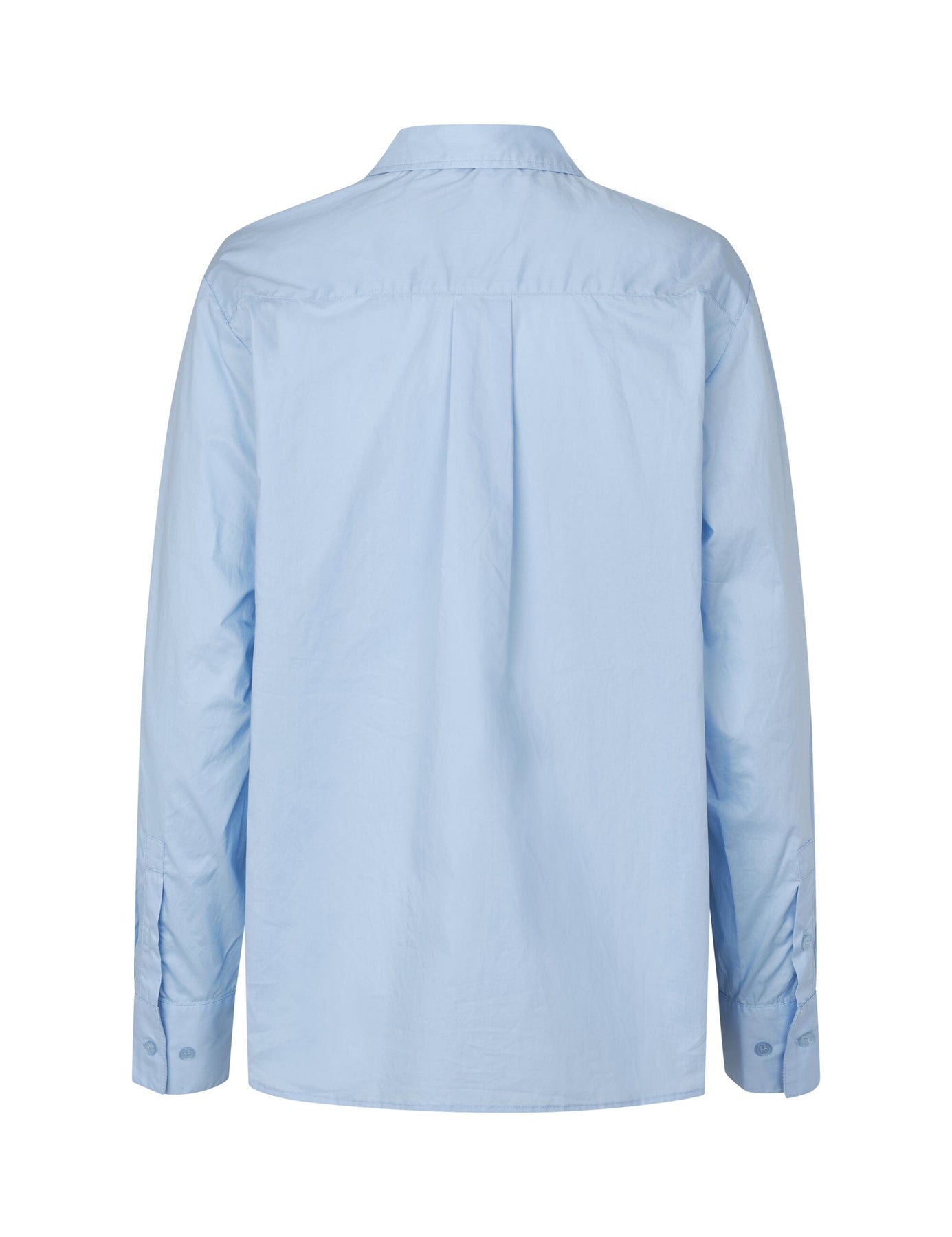 Lyseblå skjorte fra MbyM, laget av 100 % bomull. Skjorten har en løs passform, lange ermer og knepping foran.