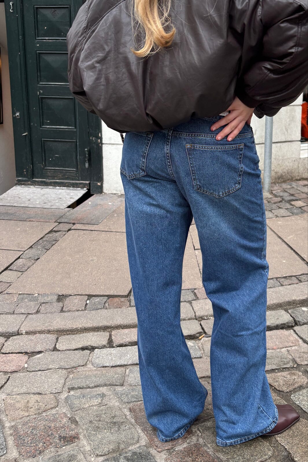 Jeans fra MbyM i en vintageblå vask. Jeansene har høy midje og en løs passform.
