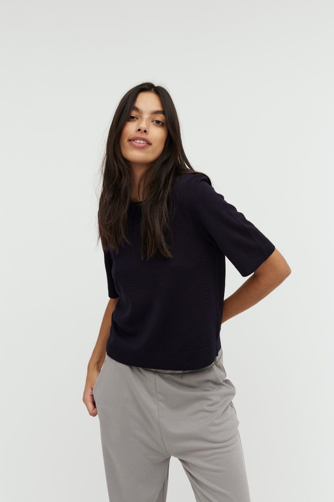 Oppdag Carla-M strikkeblusen fra MbyM, presentert i den dype Night Sky nyansen som tilfører et stilsikkert uttrykk til garderoben din.