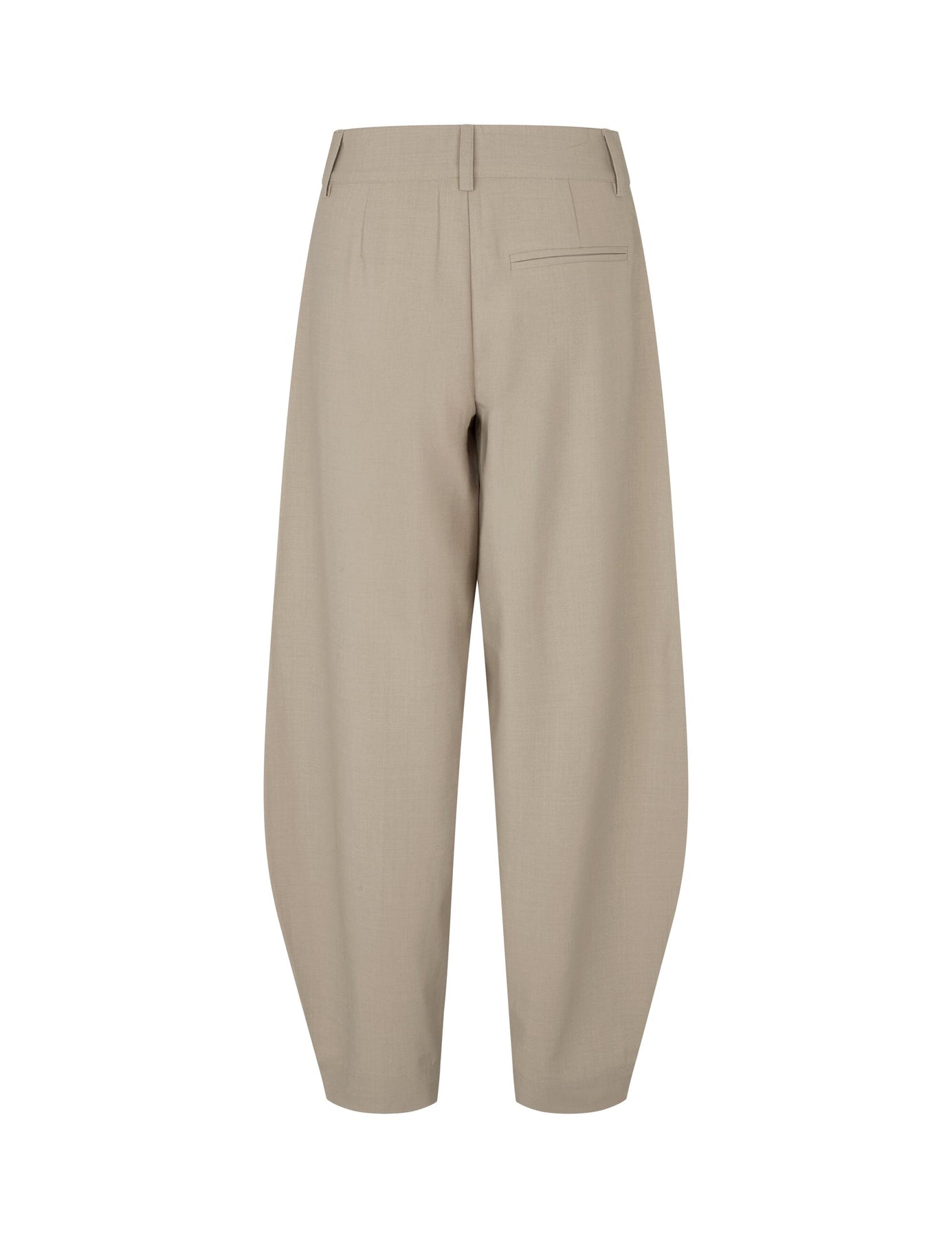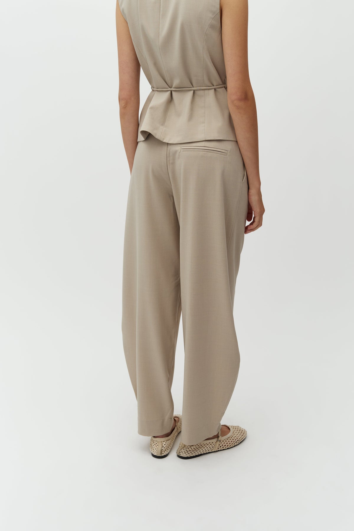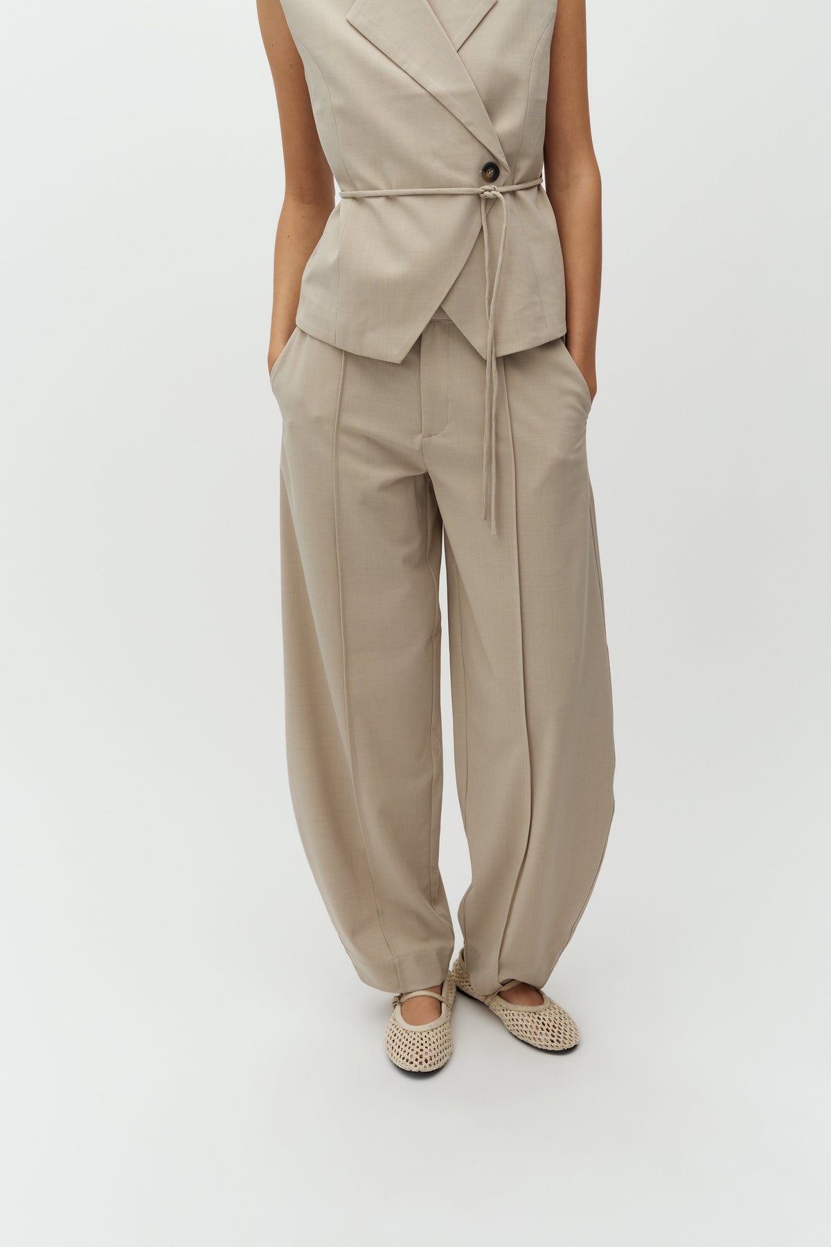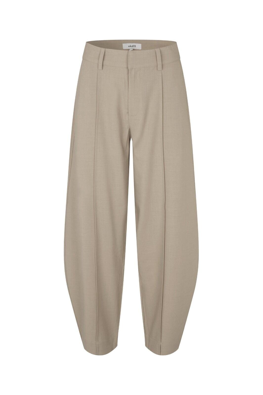 Bukser fra MbyM i lys sand. Buksene har høy midje og en løs passform med dekorative sømmer og snøredetaljer.