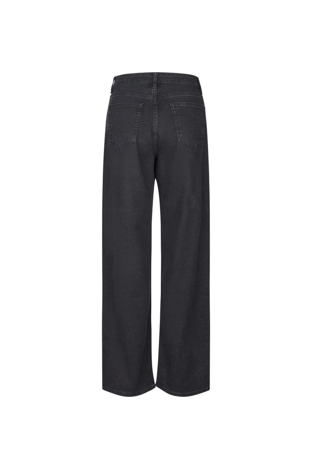 Svarte bukser fra MbyM, laget av bomull med en liten andel elastan. Buksene har en løs passform og lange ben.