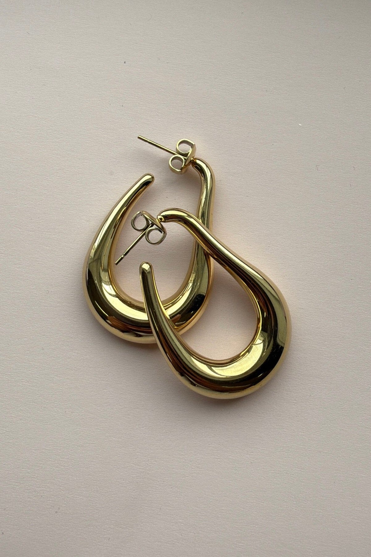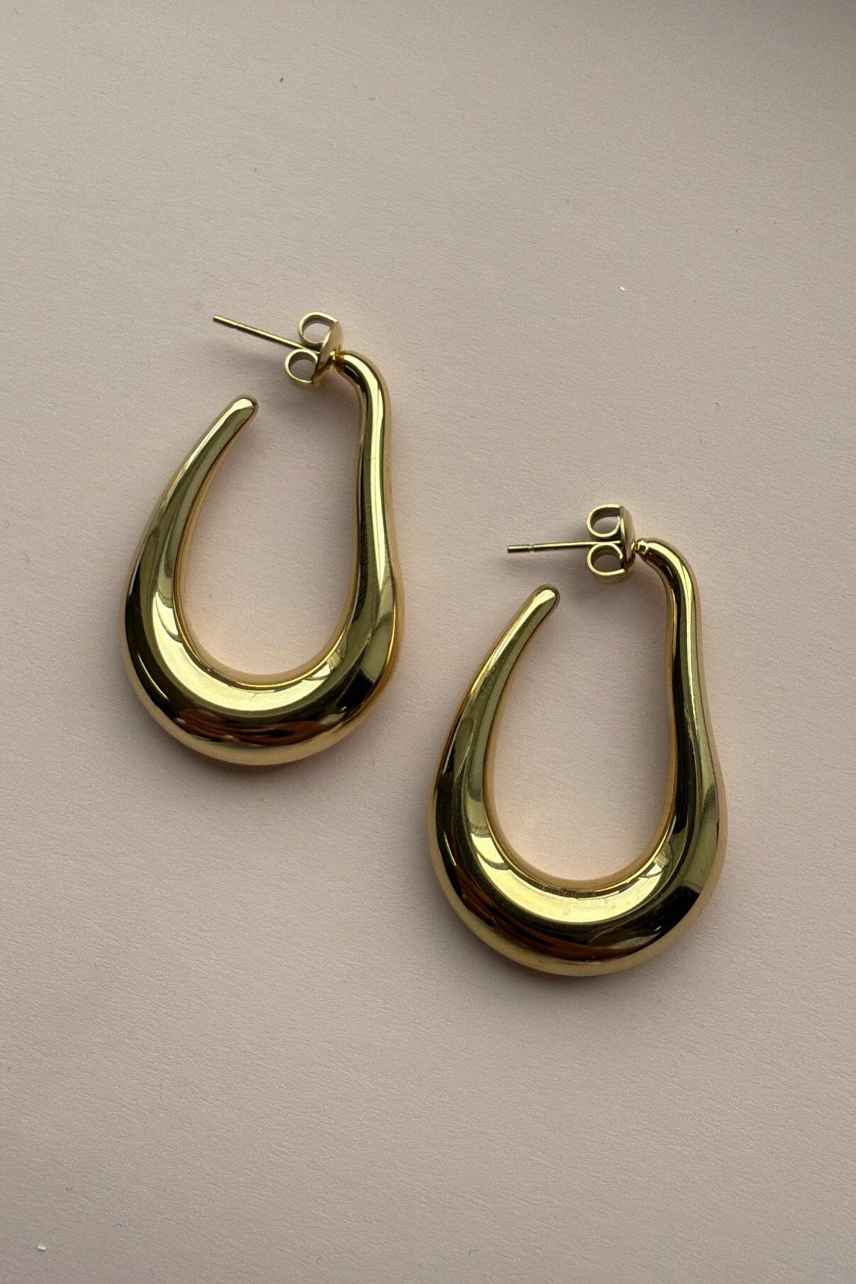 Gyldne øreringer fra Mellow Moon med en buet form og glatt overflate. Øreringene har en polert finish som gir et blankt uttrykk.