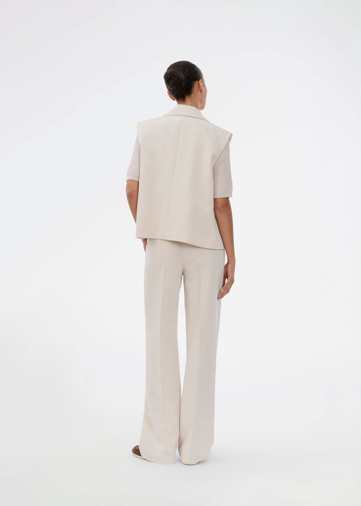 Bukser fra Modström i en lys offwhite farge. Buksene har vide ben med pressfolder og en løs passform.