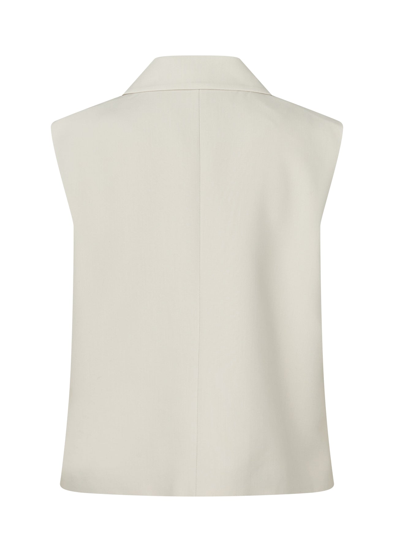 Ermeløs vest fra Modström i en offwhite nyanse. Vesten har en klassisk krage og lukkes med knapper foran.