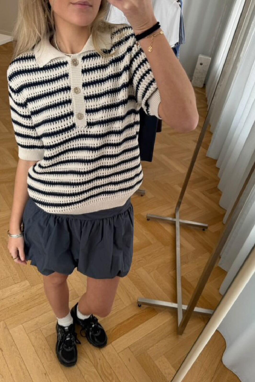 - Modellen er 177 cm høy og bruker størrelse S/36