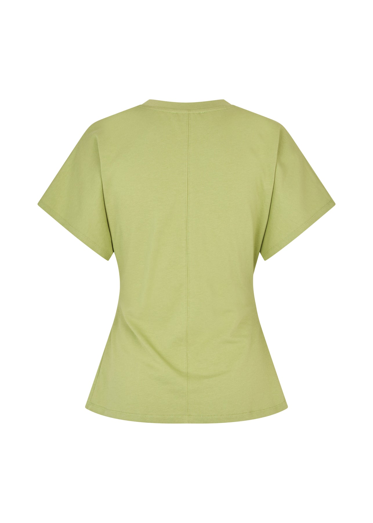 Lys grønn T-skjorte fra Modström med dekorative sømmer og rynkedetaljer. T-skjorten har en figursydd passform og korte ermer.