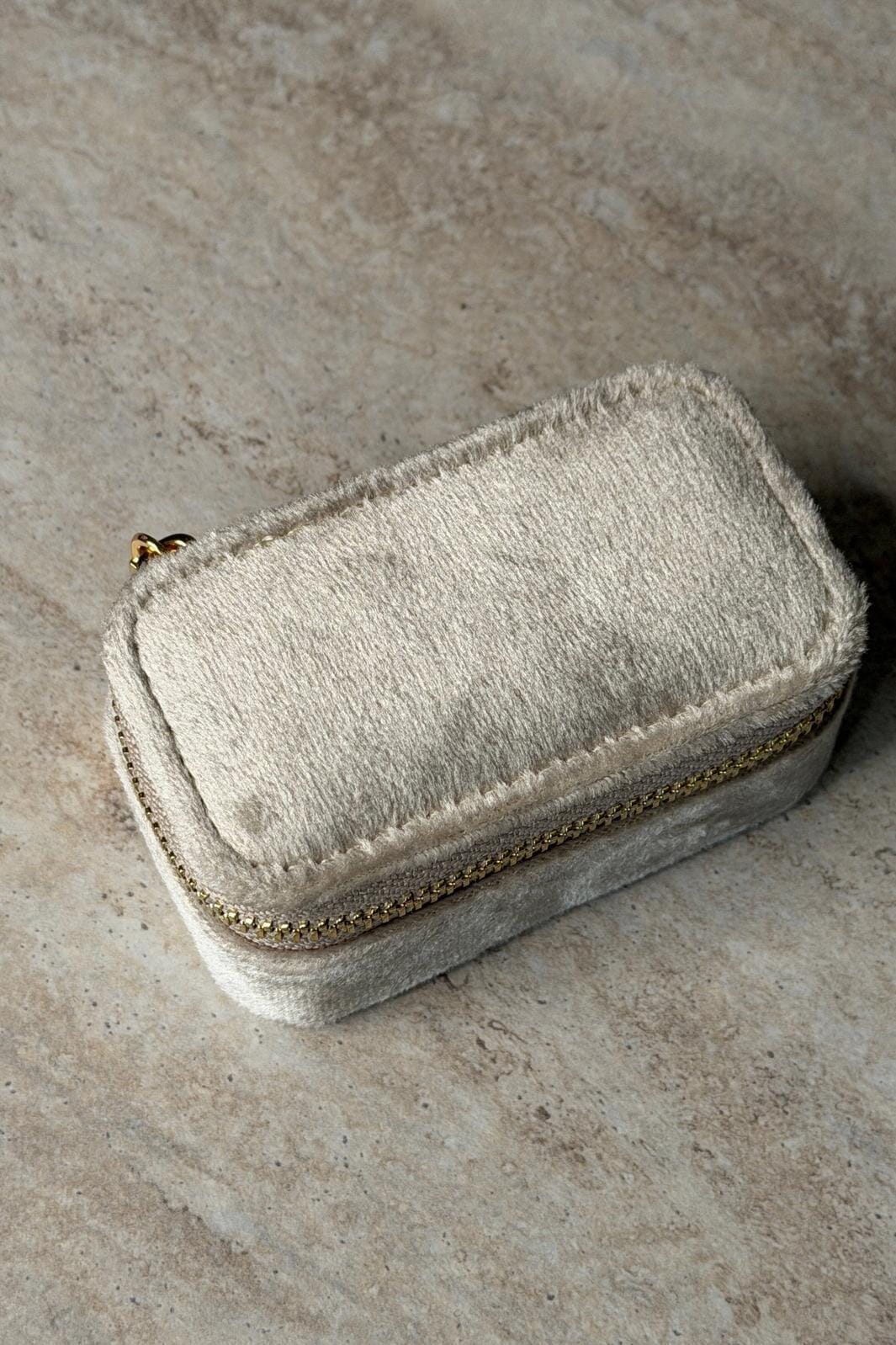 Smykkeskrin fra Molly&My Jewellery med en rosa utside og beige innside. Skrinet har rom til ringer og andre smykker.