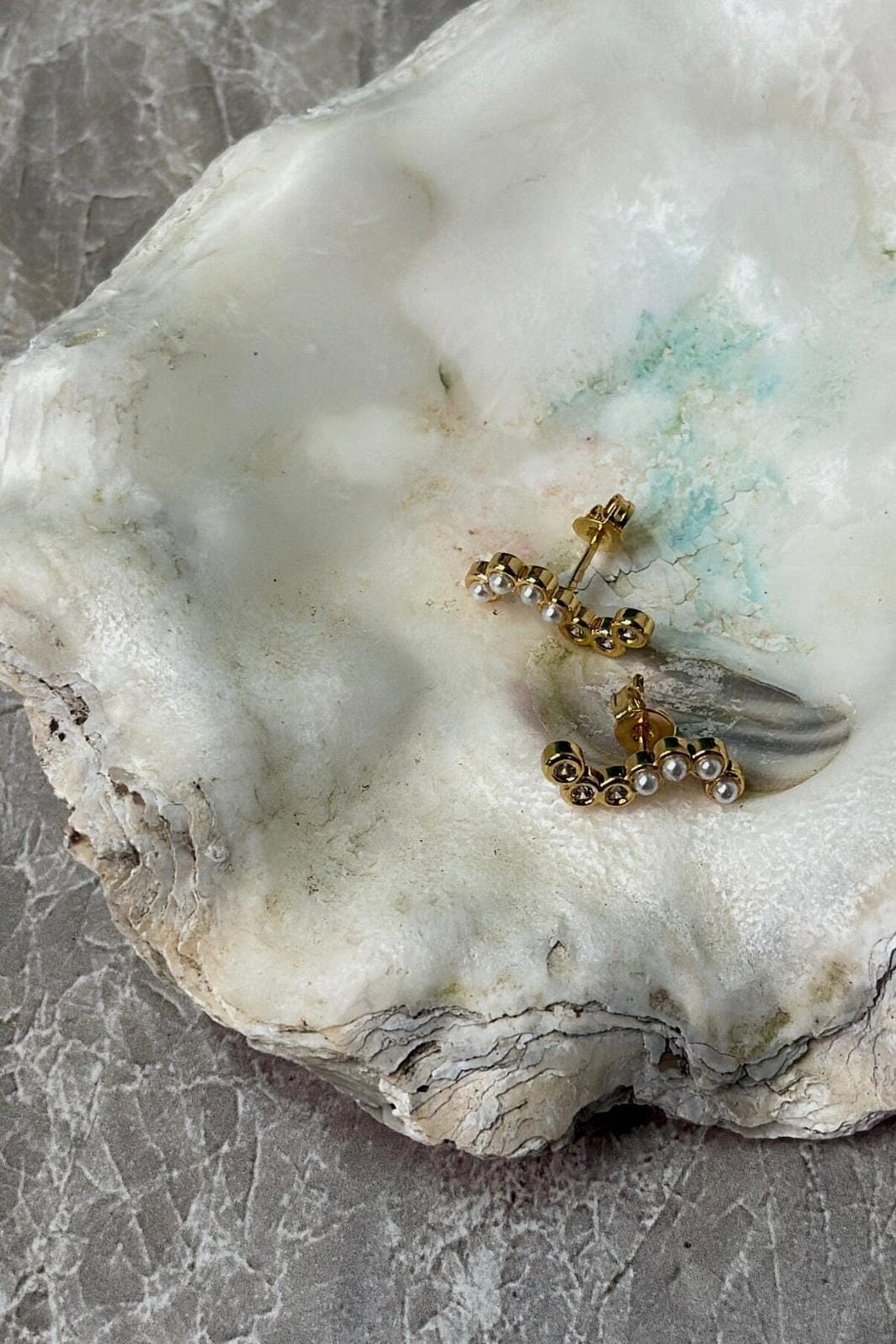 Bølgeformede øredobber fra Molly&My Jewellery x Melanie Due, laget av rustfritt stål med en forgylt finish.