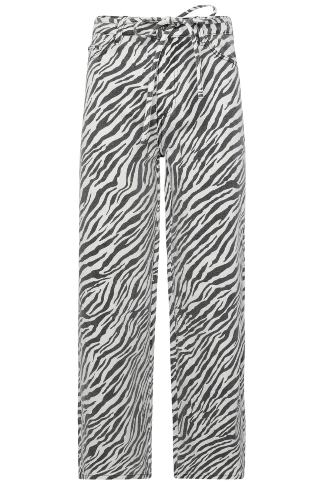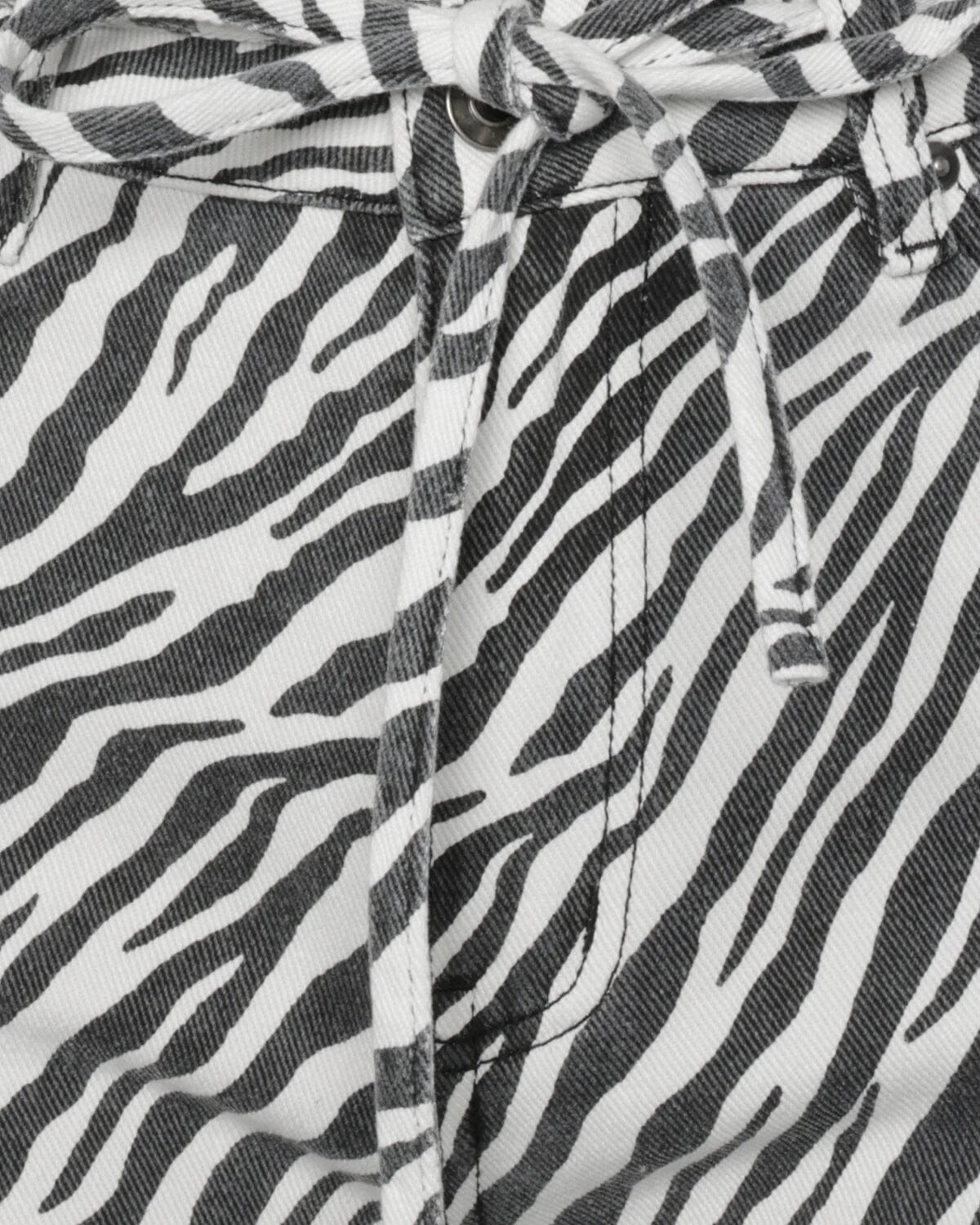 Jeans fra Moves By Minimum med zebra-mønster i svart og hvitt. Buksene har en snøredetalje i livet og ankellengde med regular fit.