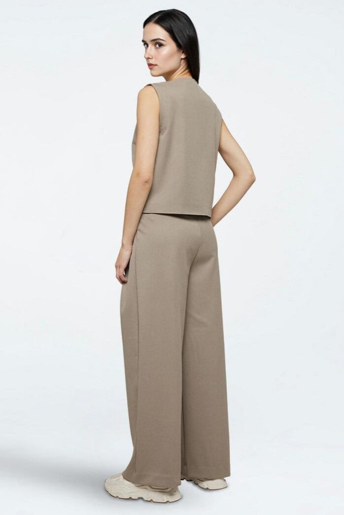 Bukser fra Moves by Minimum i fargen Fossil. De har en høy midje og vide ben med løs passform. Buksene er lange og har to baklommer samt knapp- og glidelåslukking.